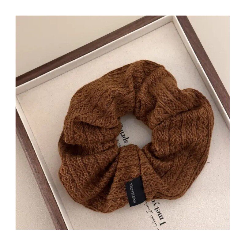 秋冬奶咖色布艺复古花纹大肠发圈女高马尾头花发绳皮套头绳发饰