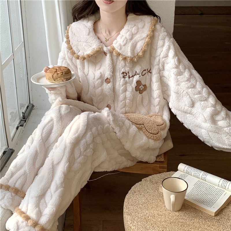 珊瑚绒睡衣女秋冬季加绒加厚2025新款可爱女士冬天保暖家居服套装
