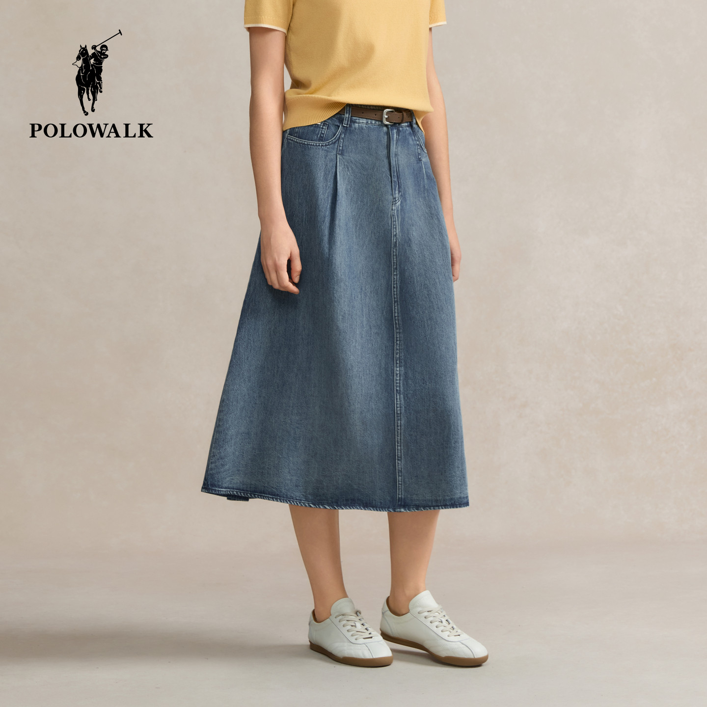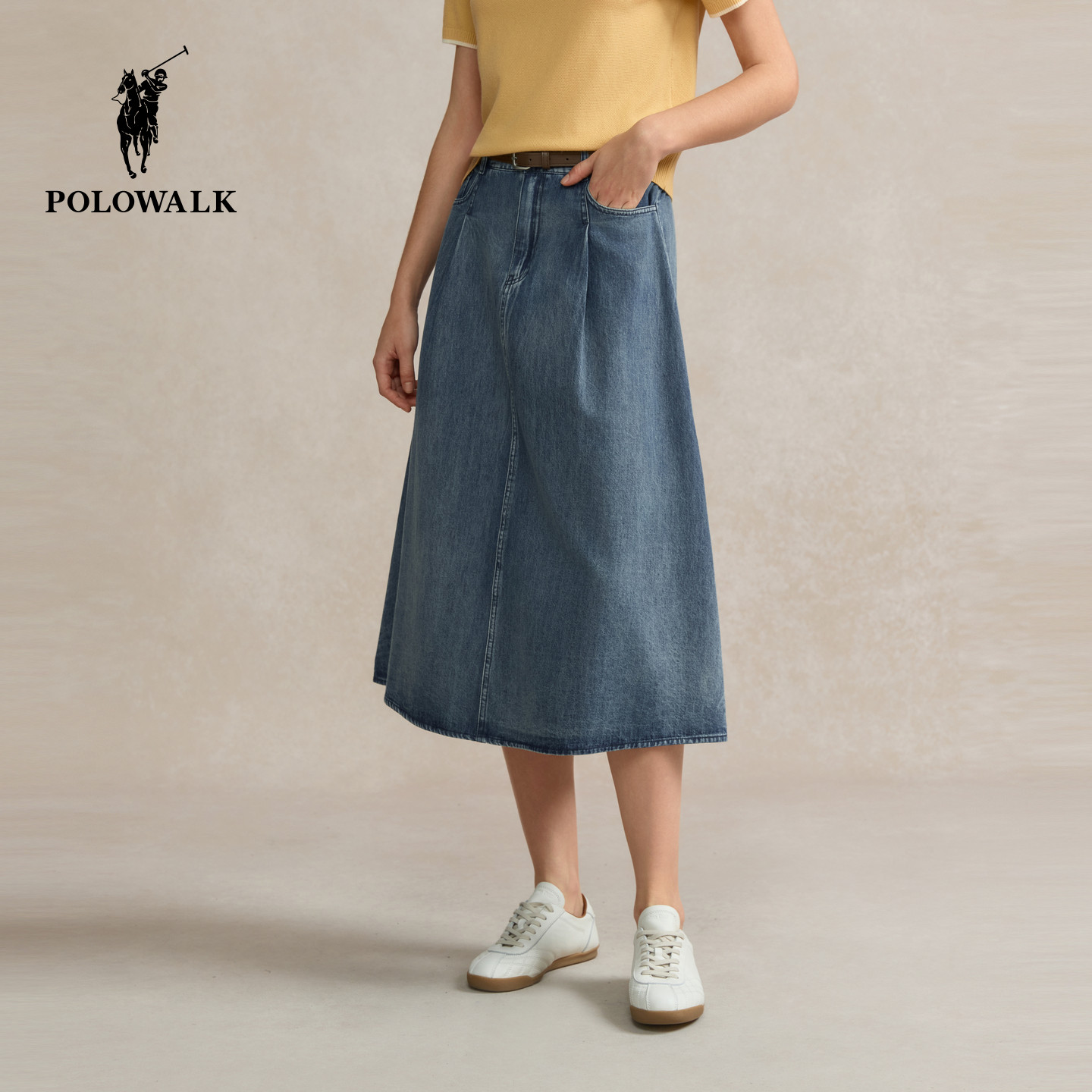 POLOWALK女式半裙2025秋冬裤新品潮流显瘦休闲牛仔A字半身裙女装