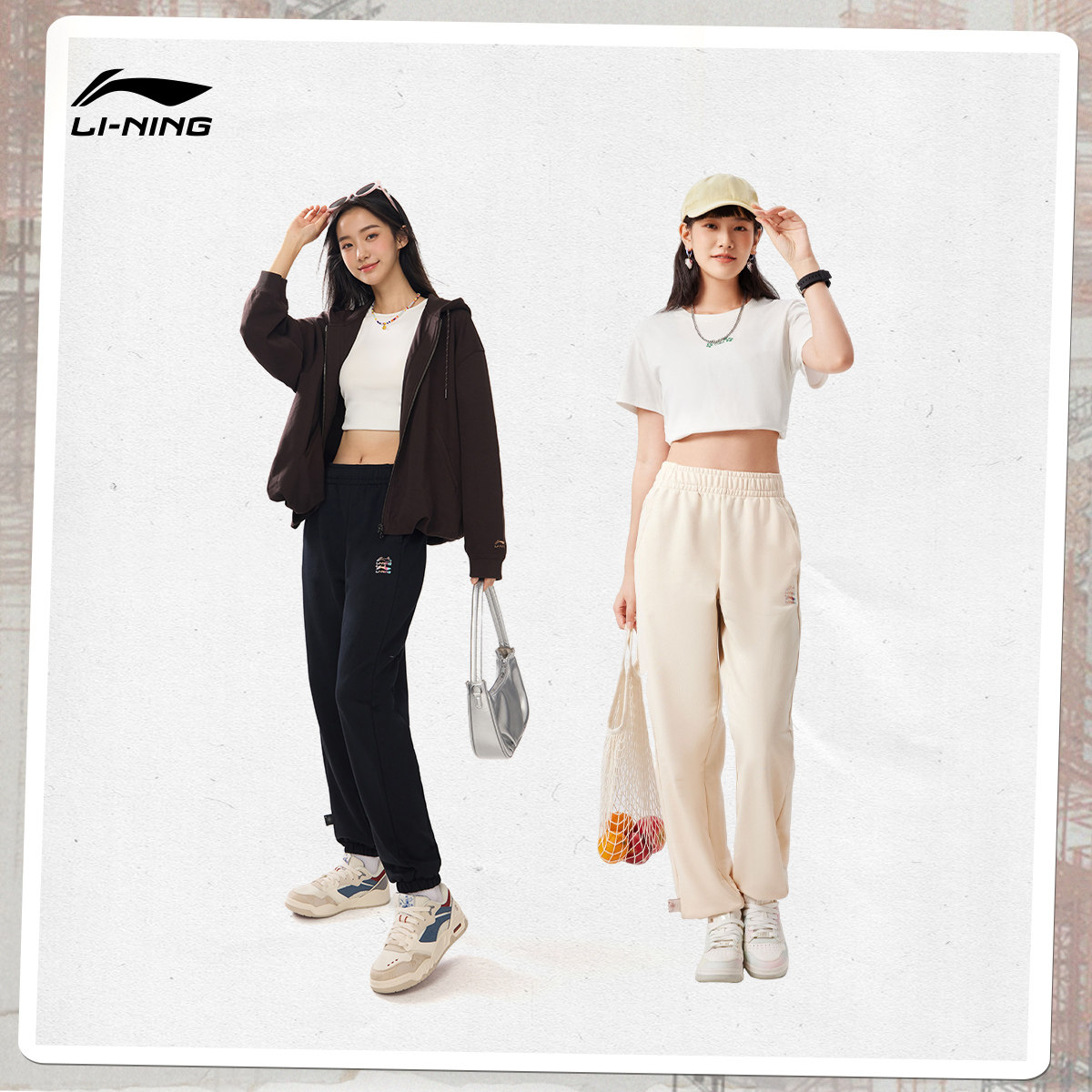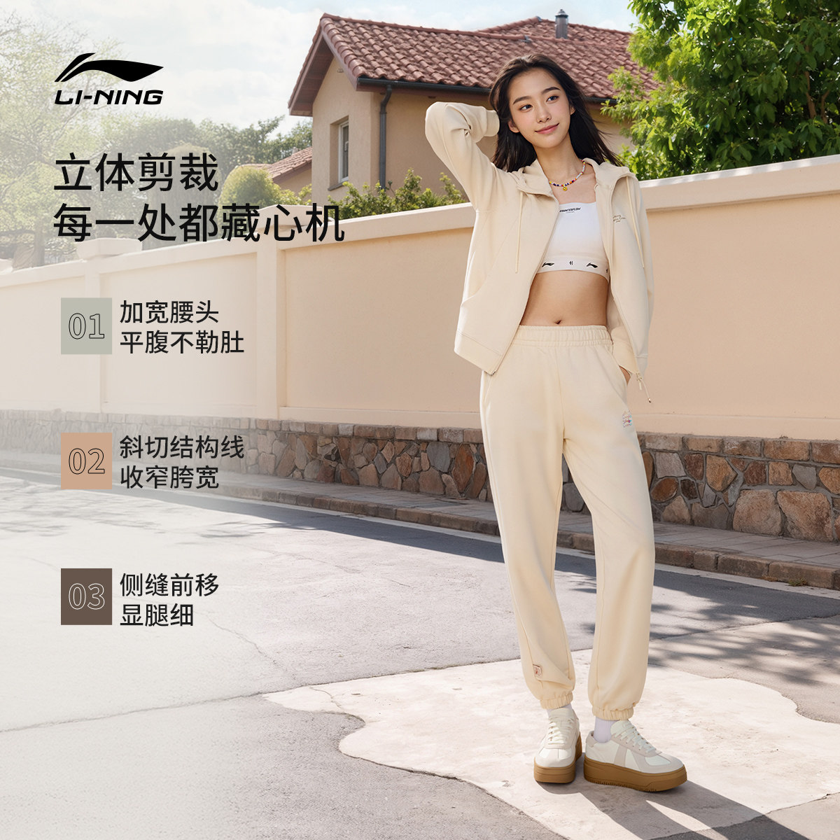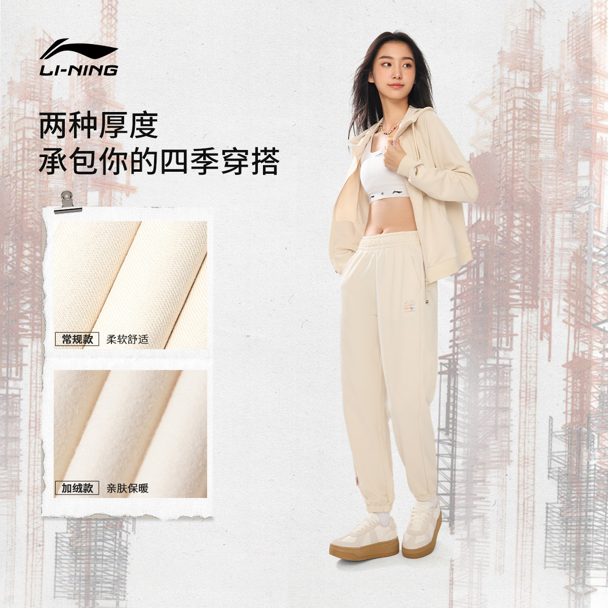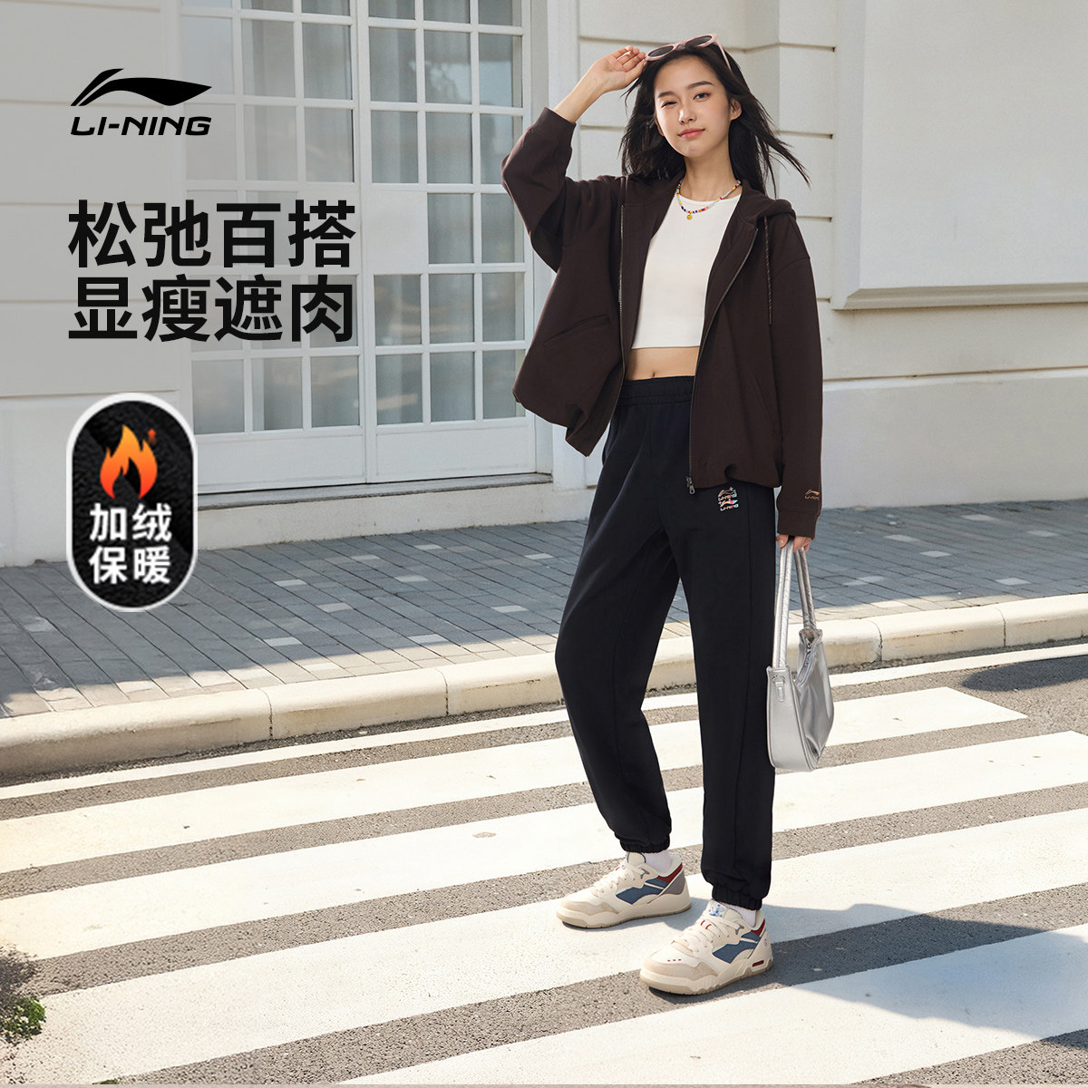 李宁卫裤女秋冬加绒束脚女士宽松休闲裤子女针织百搭毛圈运动长裤