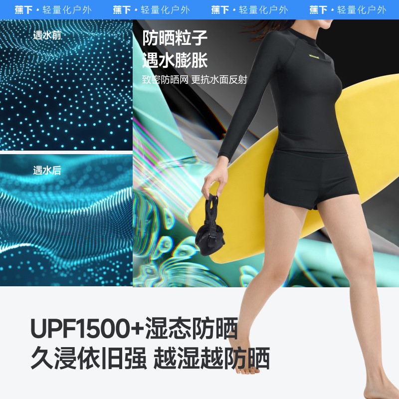 蕉下女士速干长袖温泉泳衣溯溪漂流海边冲浪平角泳裤分体泳衣套装