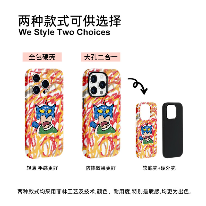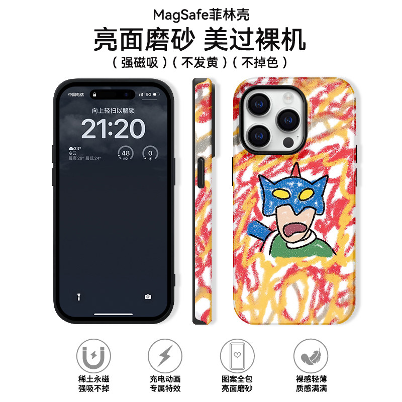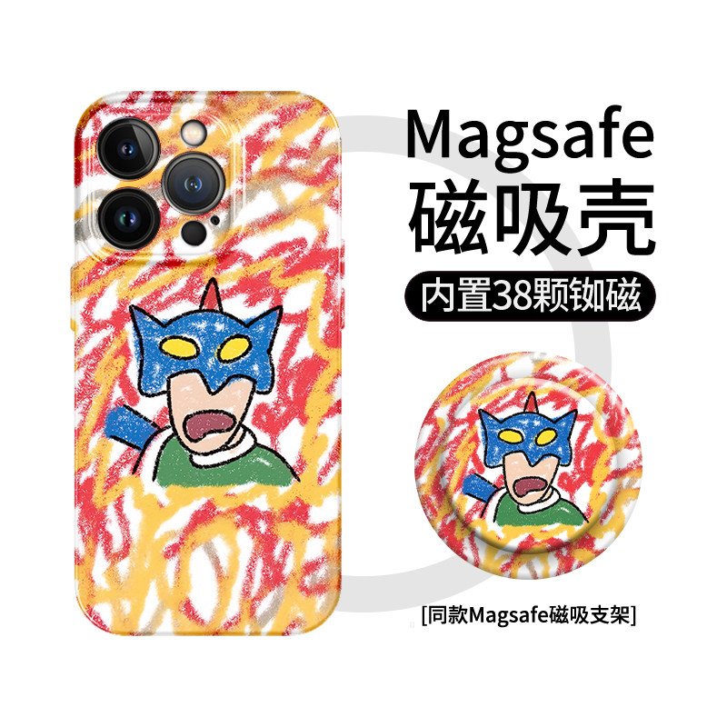 【Magsafe磁吸】涂鸦超人苹果16plus手机壳iphone15全包14promax蜡笔小新13mini支架12适用华为p70菲林mate60