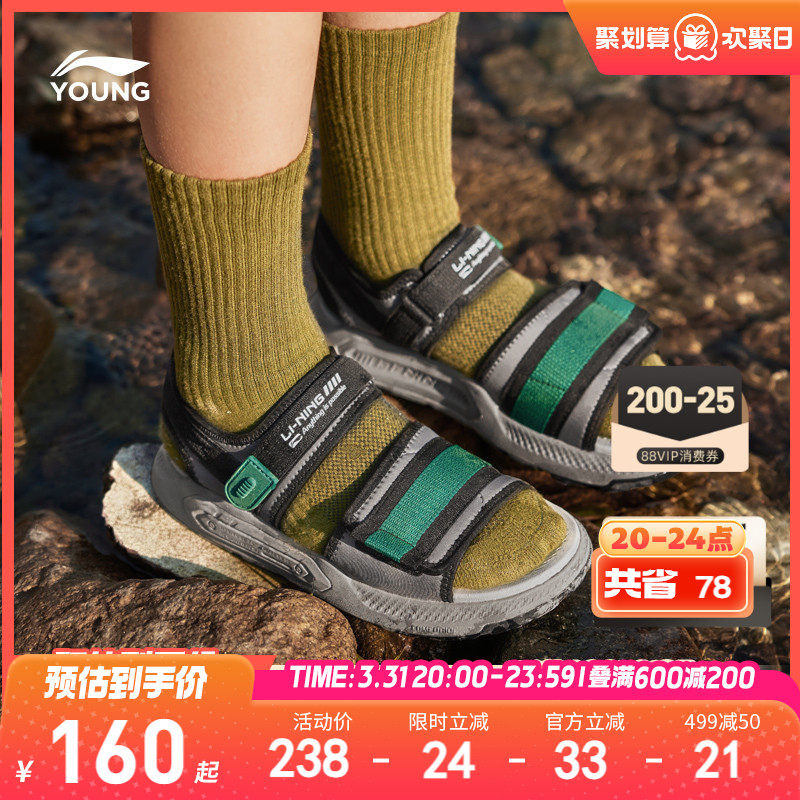 李宁露趾运动凉鞋轻便软底夏季男童鞋女童中大童青少年溯溪鞋凉拖