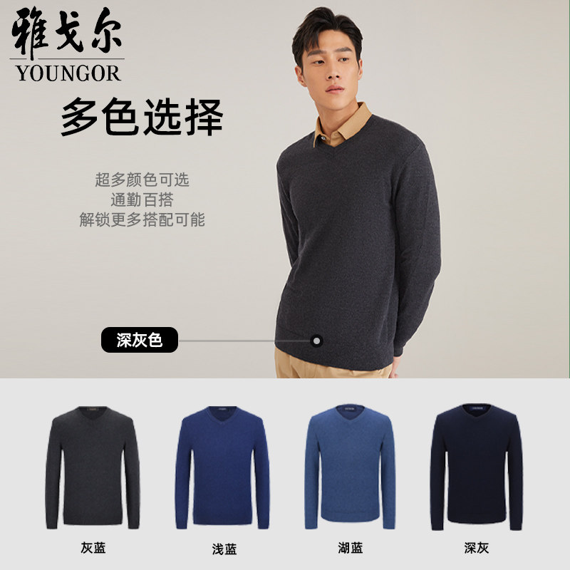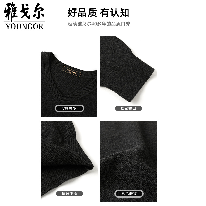 雅戈尔秋冬季男士驼绒V领毛衣青年保暖职业上班打底针织毛衫2916