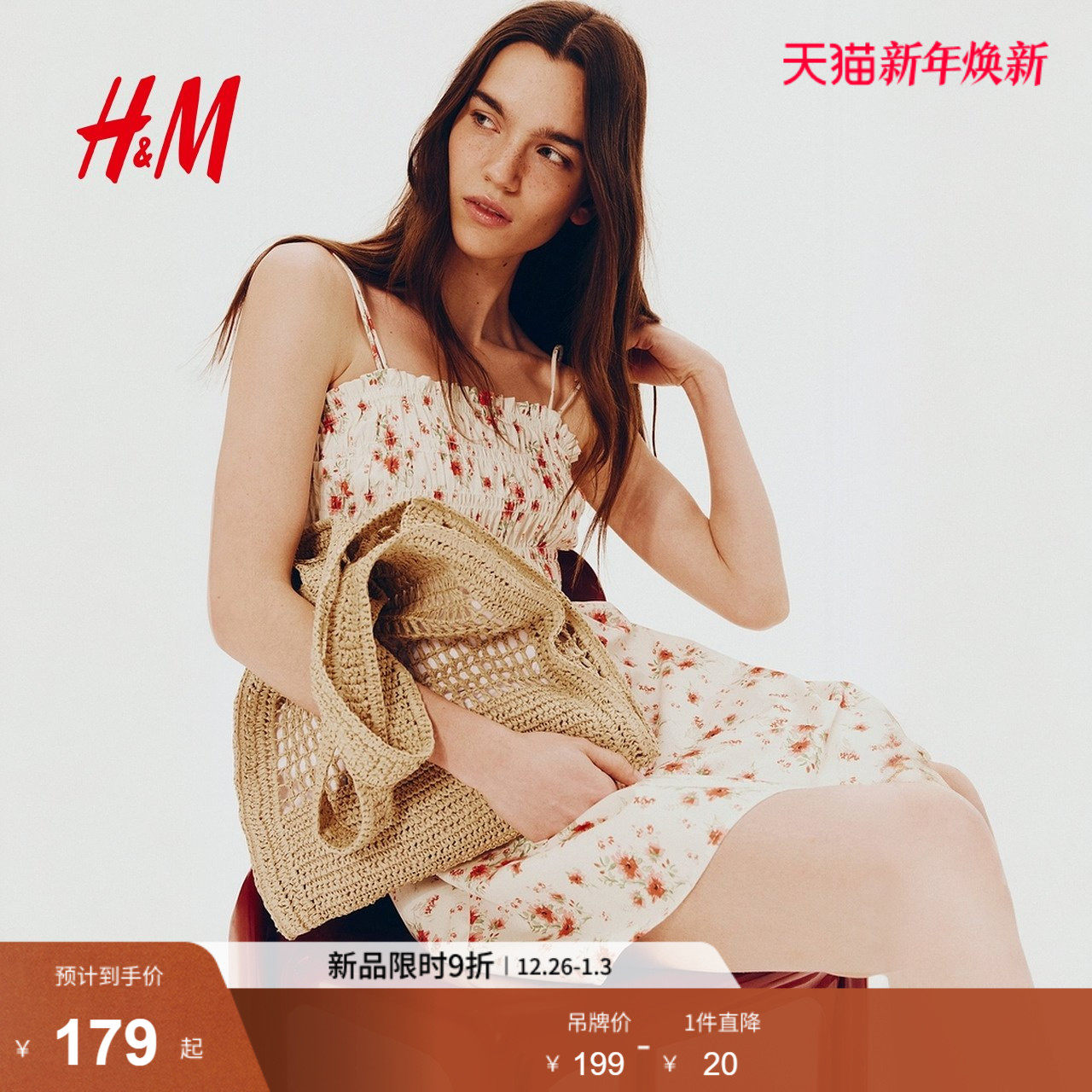 HM女装背心吊带连衣裙25冬新款方领法式喇叭设计感碎花裙1275782