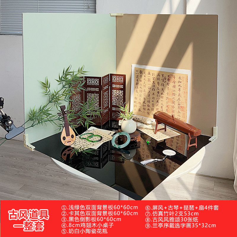 古风拍照道具文玩玉石翡翠珠宝首饰谷美摆拍盲盒玩偶场景布置美食复古木纹拍摄背景板暗黑色书法纱摄影背景布