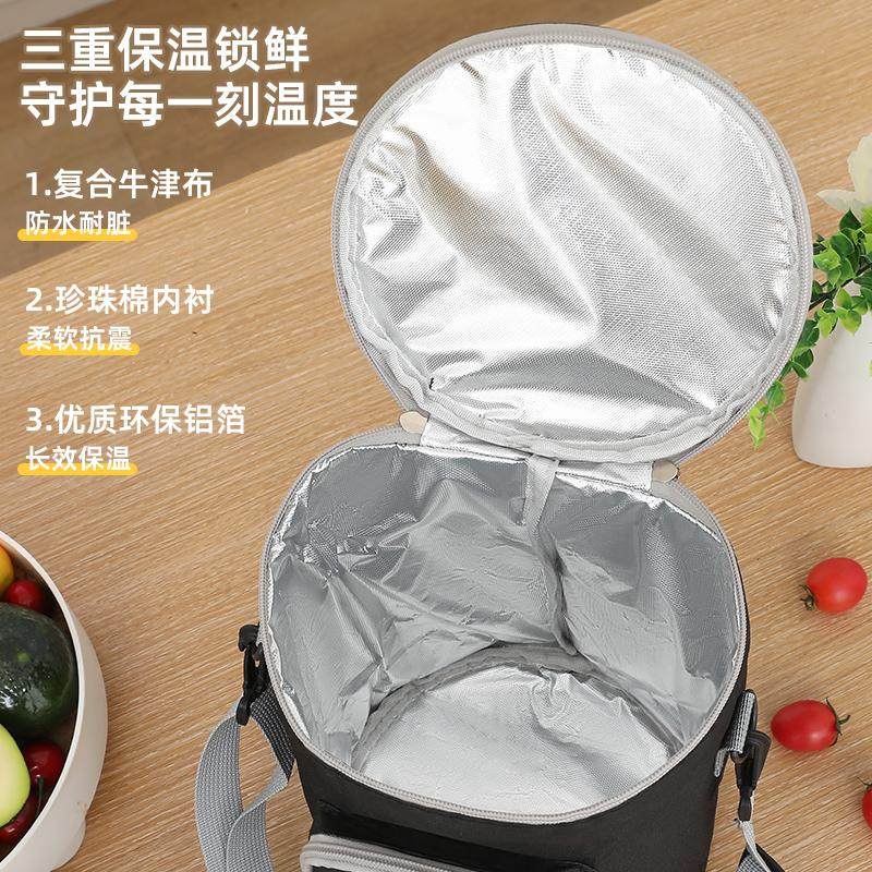 圆形保温饭盒袋手提保温桶袋子加厚铝箔保温袋圆筒防水大容量长效