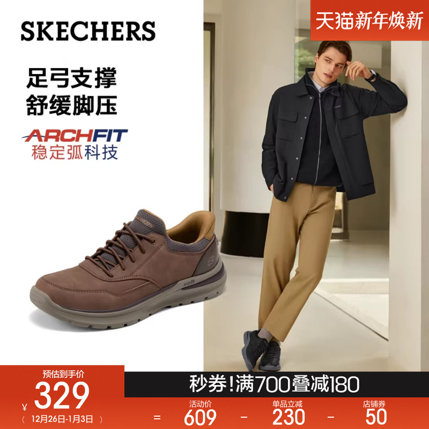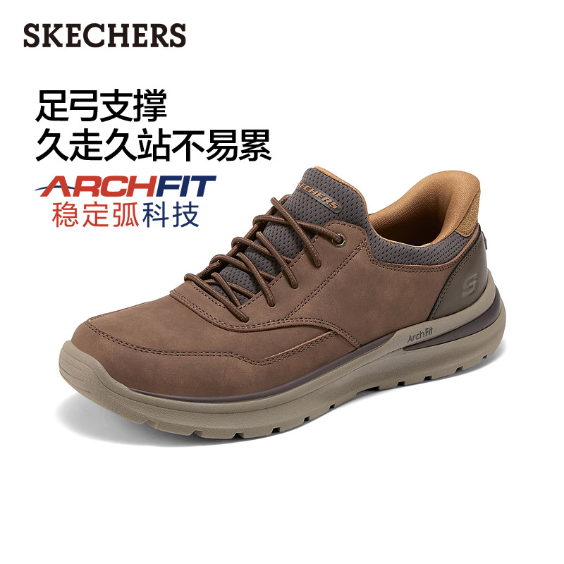 斯凯奇秋冬新款男子舒适休闲皮鞋商务鞋通勤鞋德比鞋软底上班板鞋