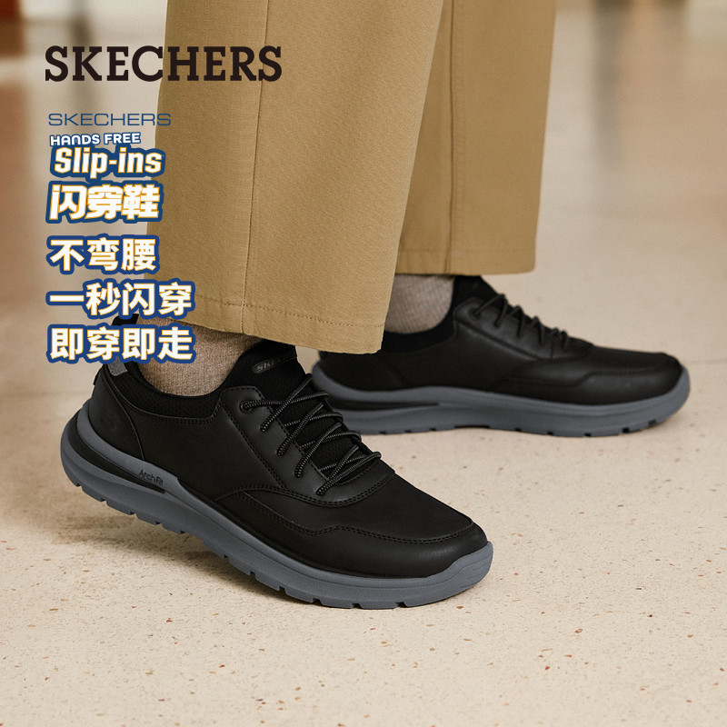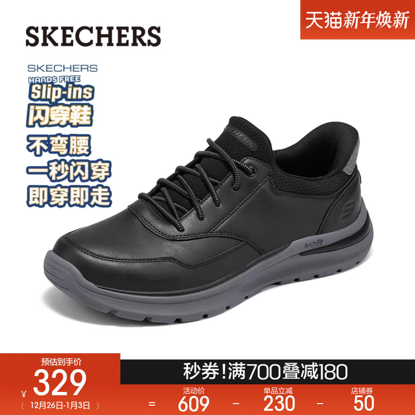 斯凯奇闪穿鞋2025秋冬商务休闲男鞋一脚蹬通勤鞋足弓支撑运动皮鞋