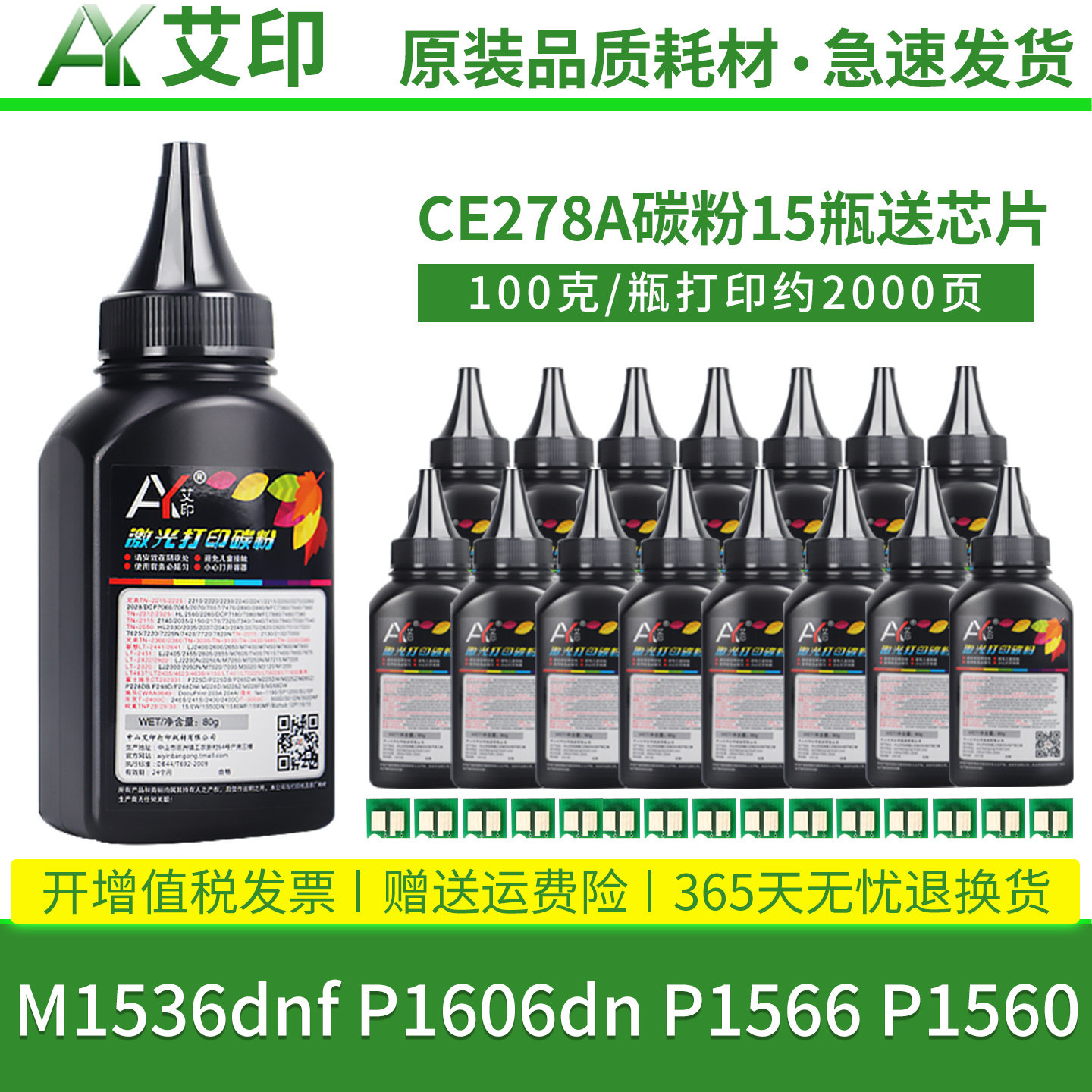 适用惠普M1536dnf碳粉P1566 P1606dn CE278A P1560 78A 278A硒鼓HP LaserJet激光一体复印打印机墨盒芯片墨粉