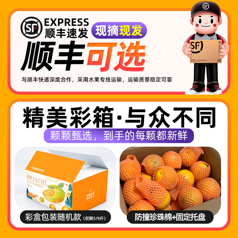 九月红果冻橙新鲜橙子10斤大果斤当季整箱湖北宜昌水果甜秭归脐橙