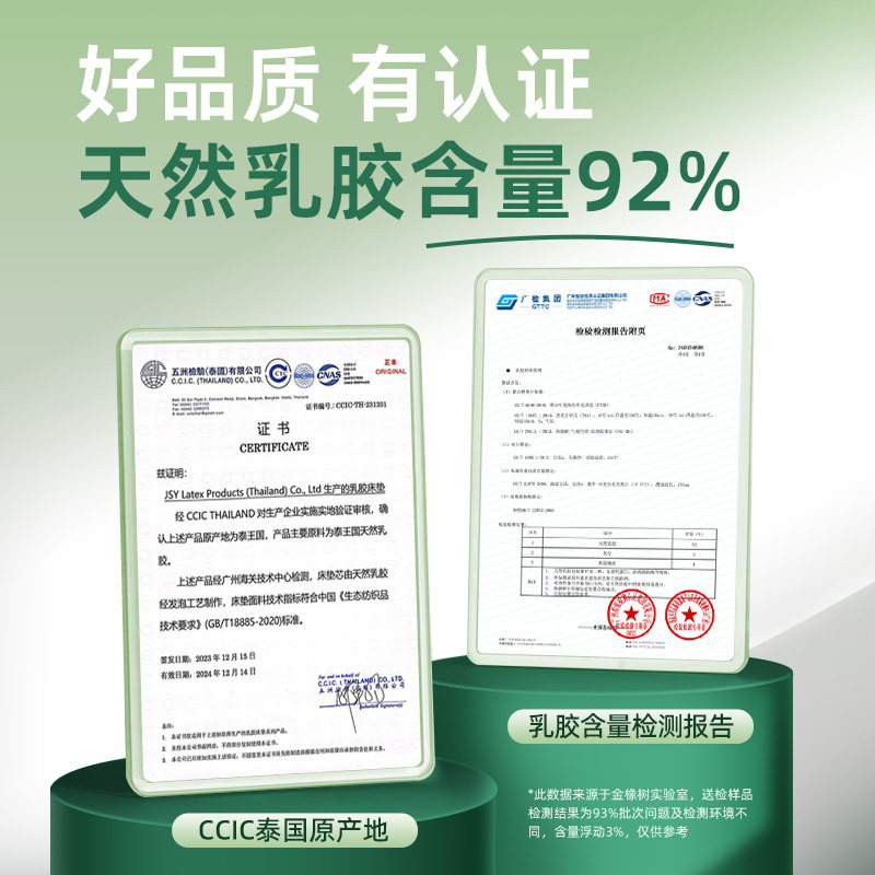 金橡树乳胶床垫5cm7.5cm泰国进口天然乳胶橡胶双人1.5/1.8米 悦享