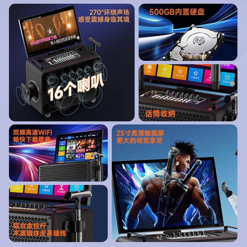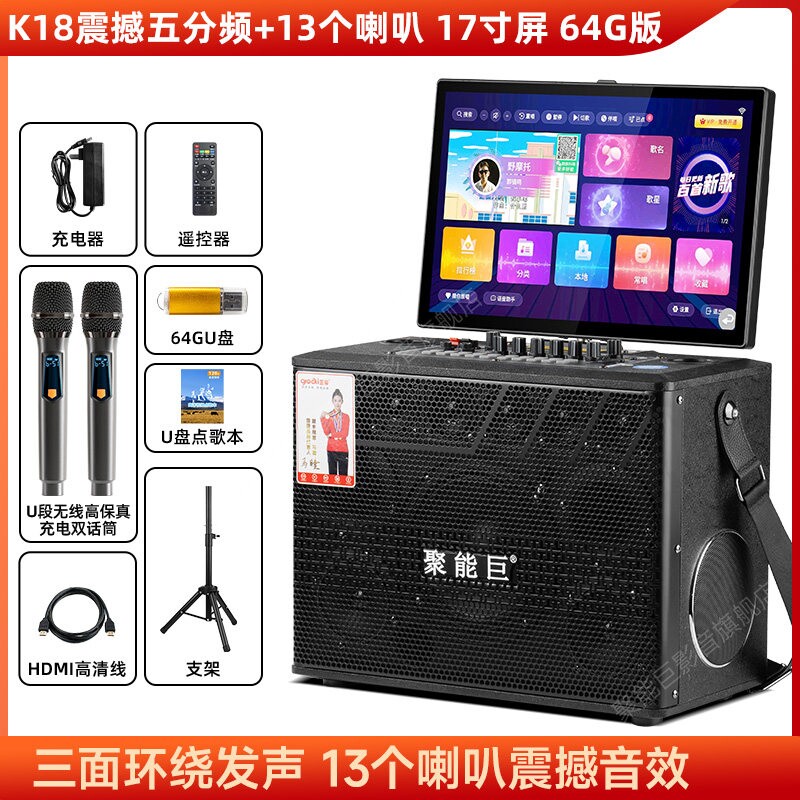 广场舞音响带显示屏户外唱k歌卡一体机家庭ktv套装音箱点歌机拉ok