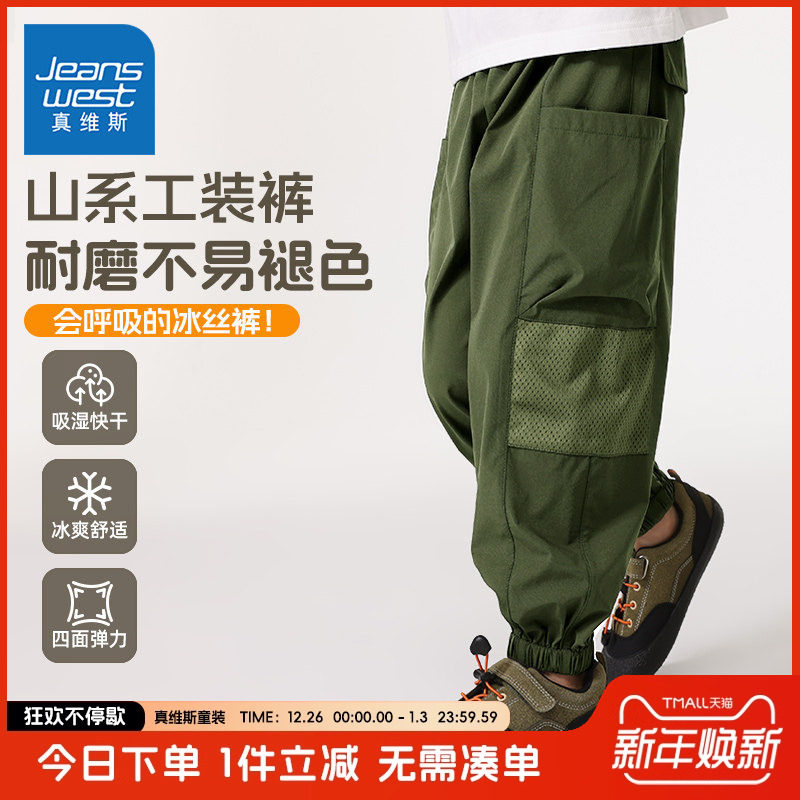 真维斯童装男童裤子夏季儿童冰丝运动工装裤男大童户外速干防蚊裤