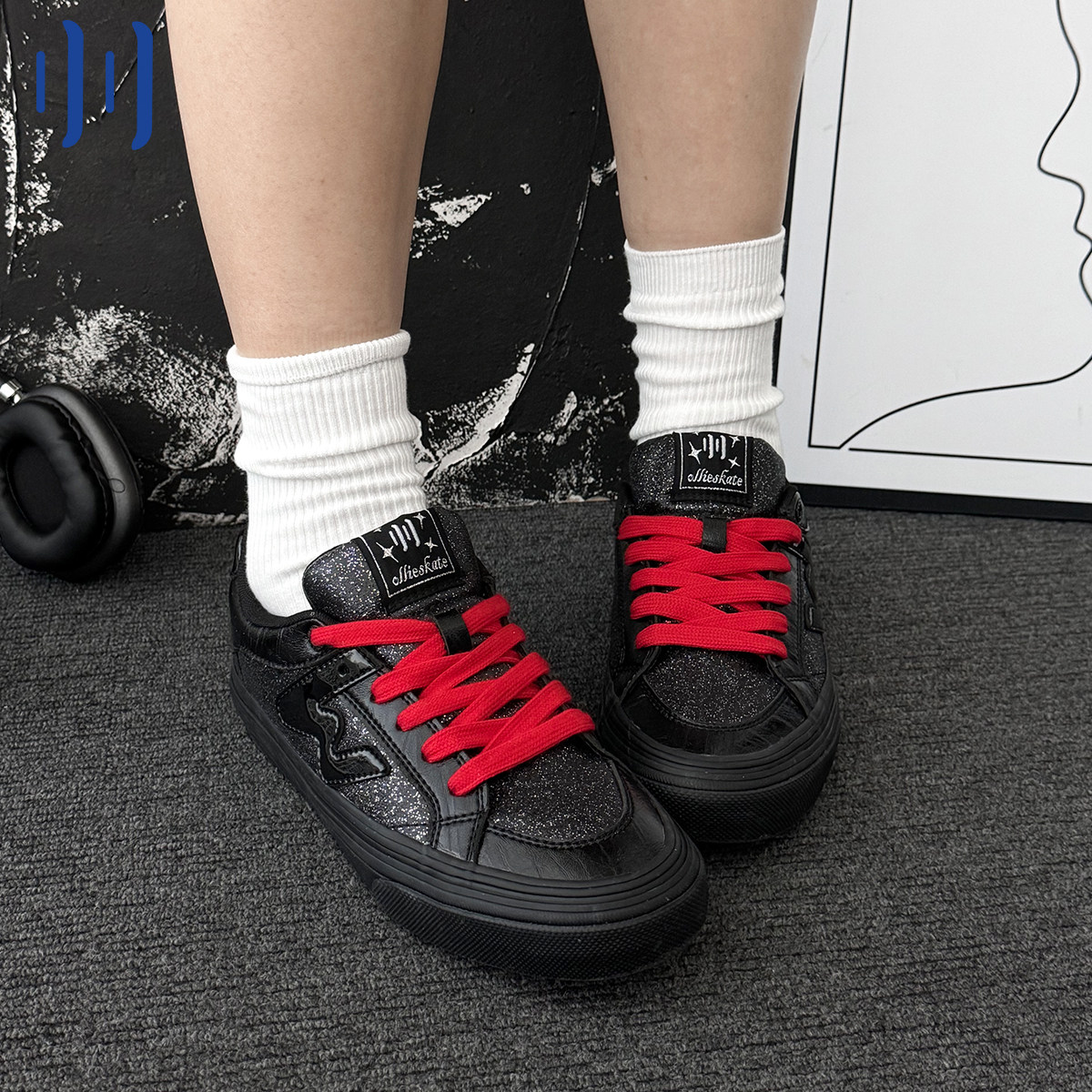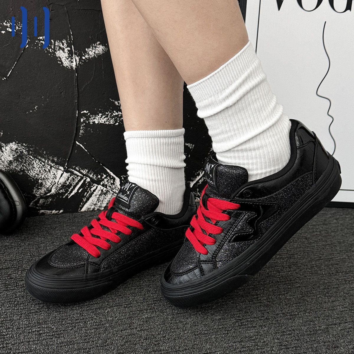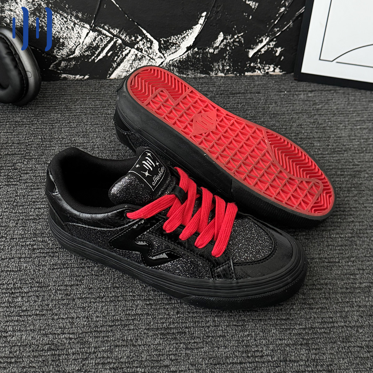 顽刻官方黑色红底黑闪亮晶晶冬季校园风休闲W系列男女国潮滑板鞋