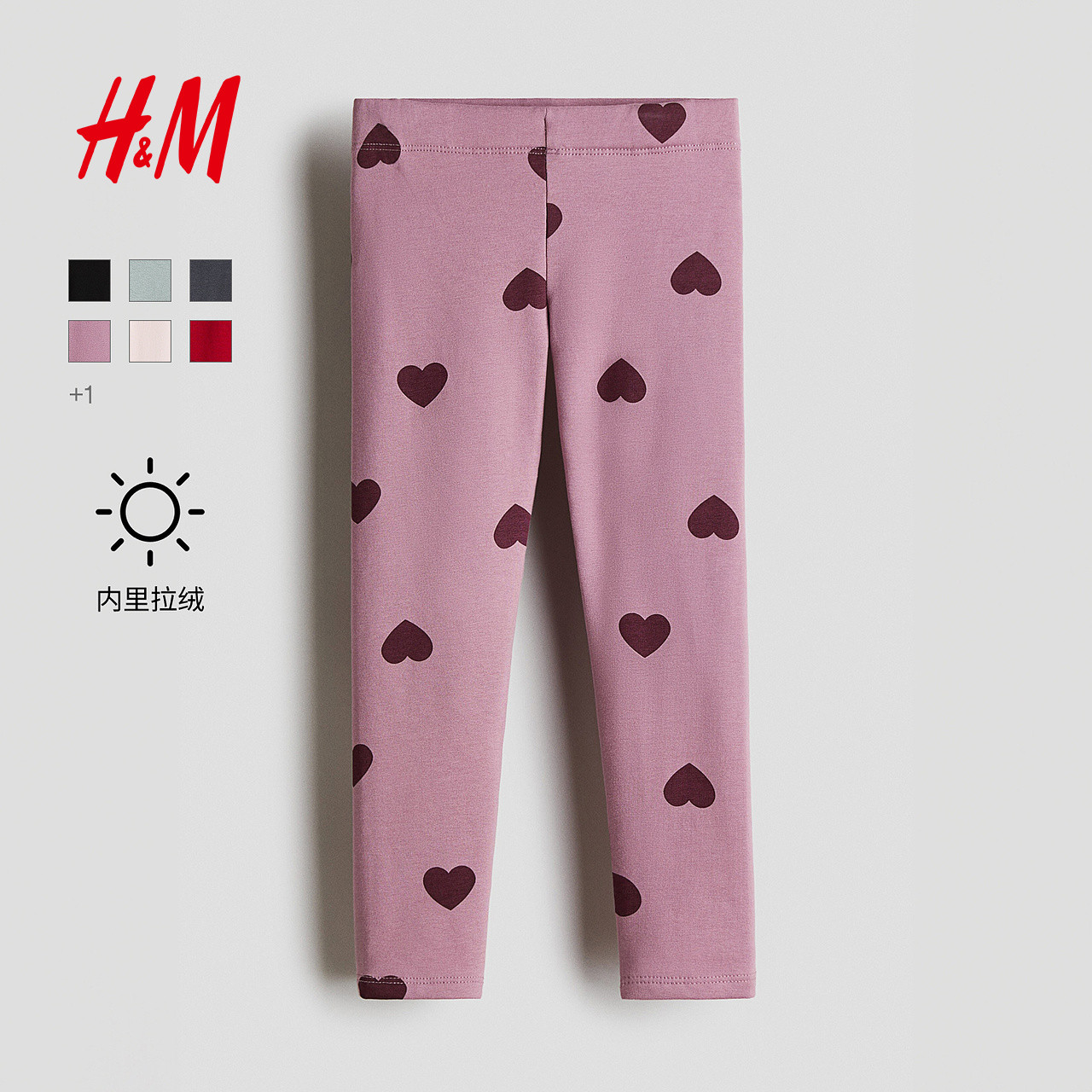 HM童装儿童女童裤子春季加绒保暖拜年服新年红色打底长裤1193333