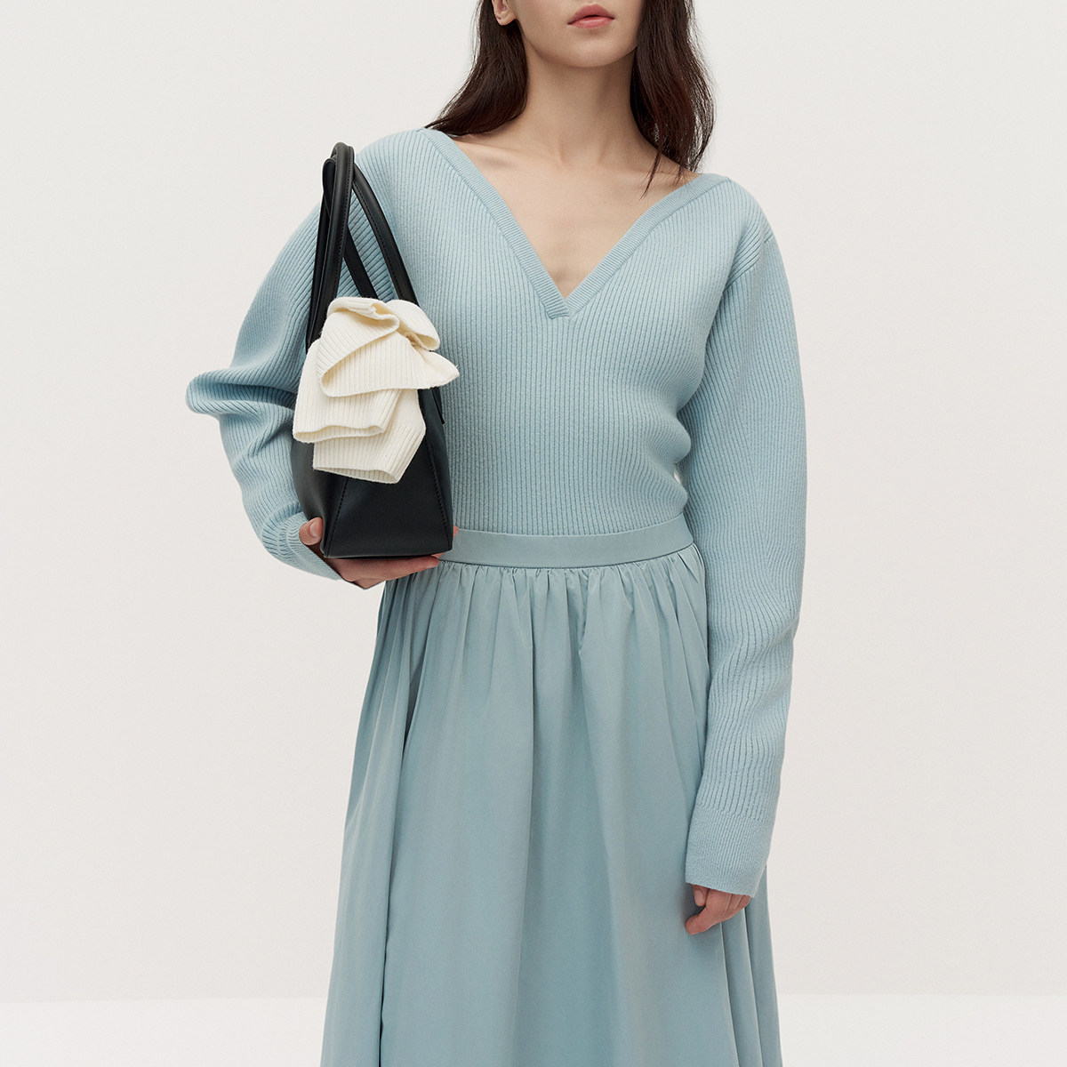 BANANA CICI2026年春季新款荷叶边V领针织衫/连衣裙