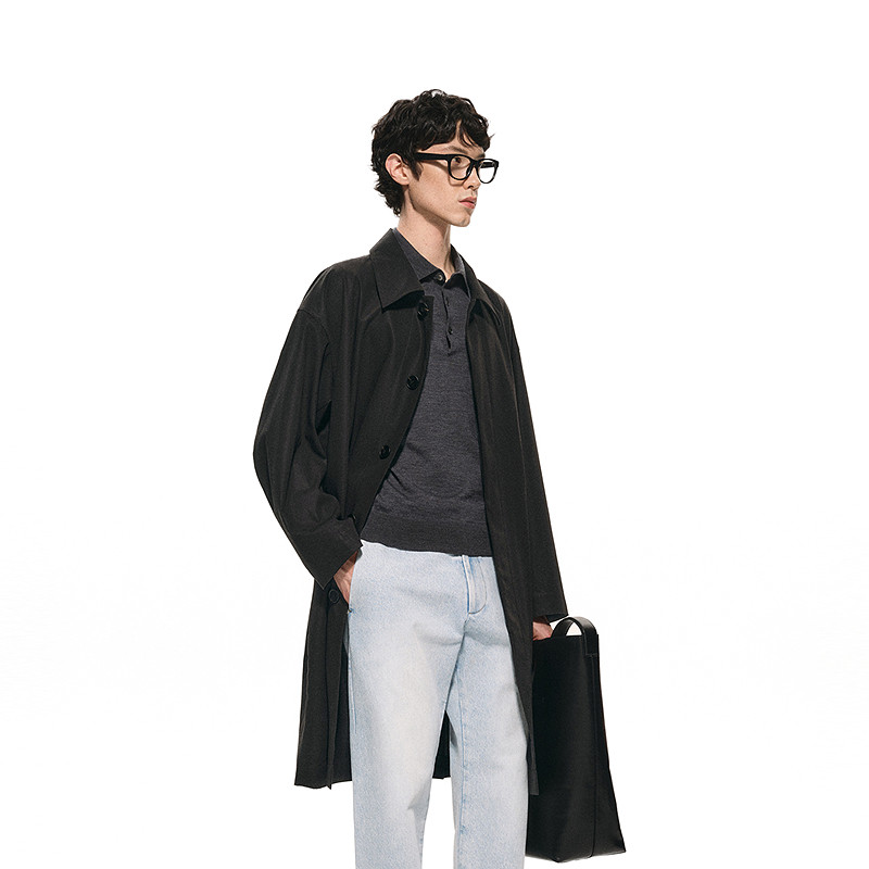 [黑支线]速写男装春秋新款风衣外套男廓形翻领风衣优雅简约潮