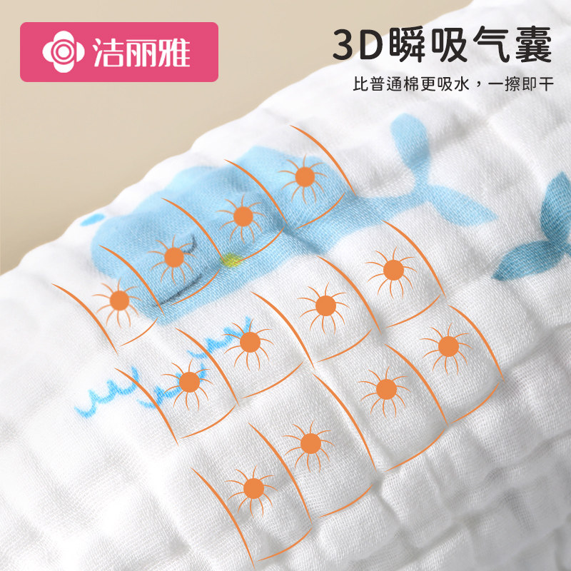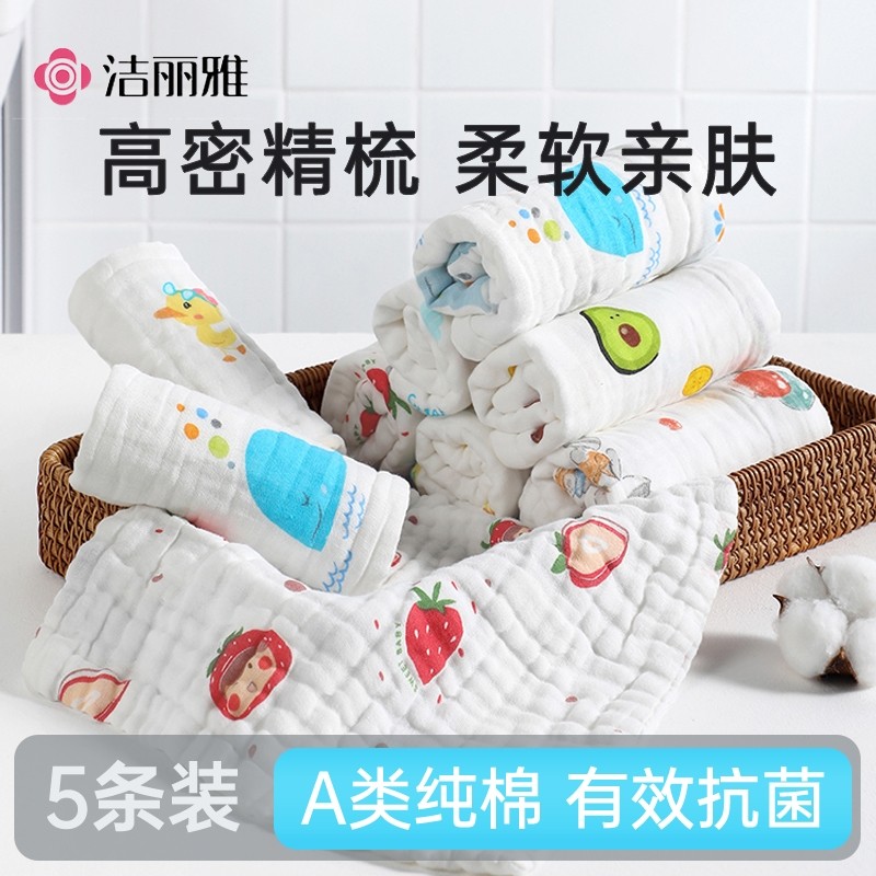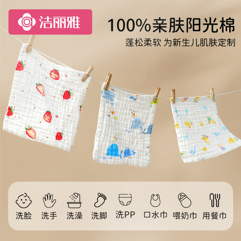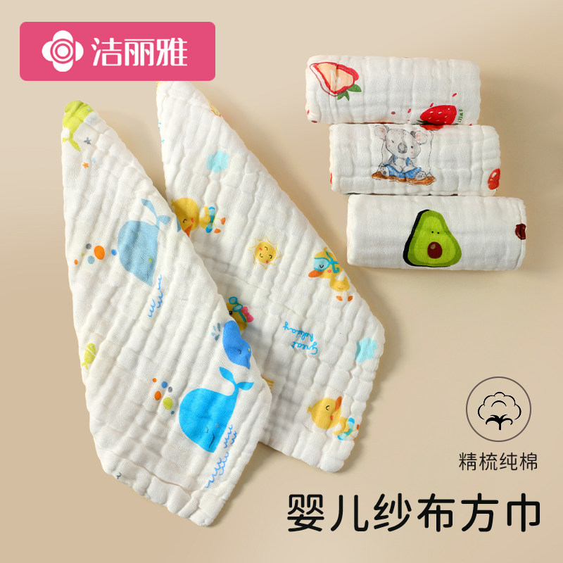 洁丽雅纱布毛巾儿童汗巾洗脸专用新生婴儿超软小方巾纯棉小毛巾