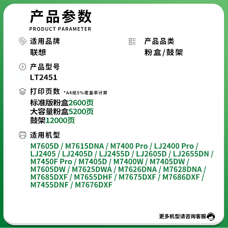 双杰LT2451粉盒 适用联想m7605d LJ2405D 2605D M7405d 7455DNF 2455D m7615dna 7400pro墨盒 LD2451硒鼓