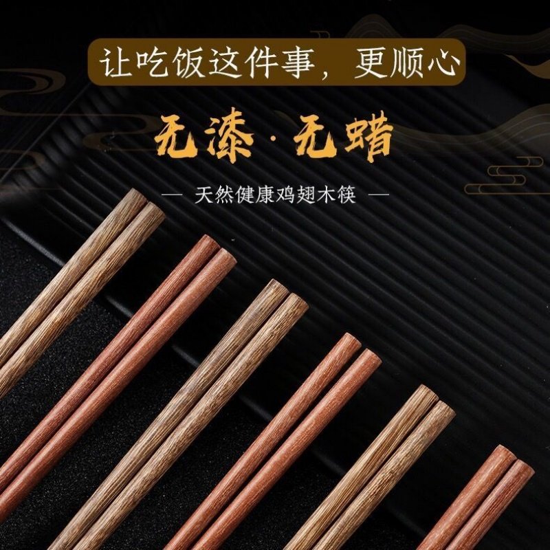 唐宗筷鸡翅木筷子家用新款无漆无蜡防霉抗菌中式实木筷可进洗碗机