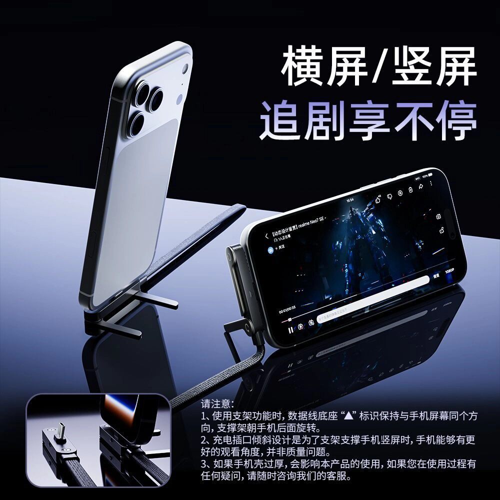 240W数据线多功能折叠支架编织线充电线适用于华为荣耀苹果15手机1617maxOPPO小米typec手机快充线