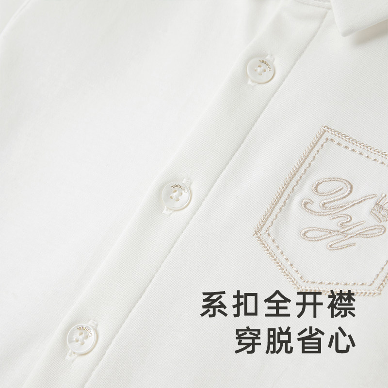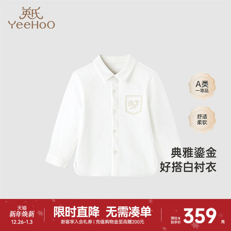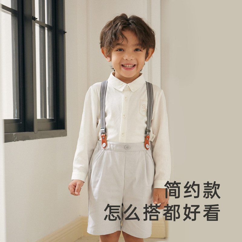 【高定系列】英氏童装典雅刺绣百搭白衬衫秋季速干透气休闲上衣