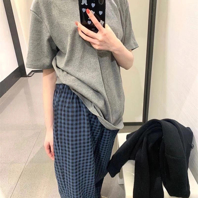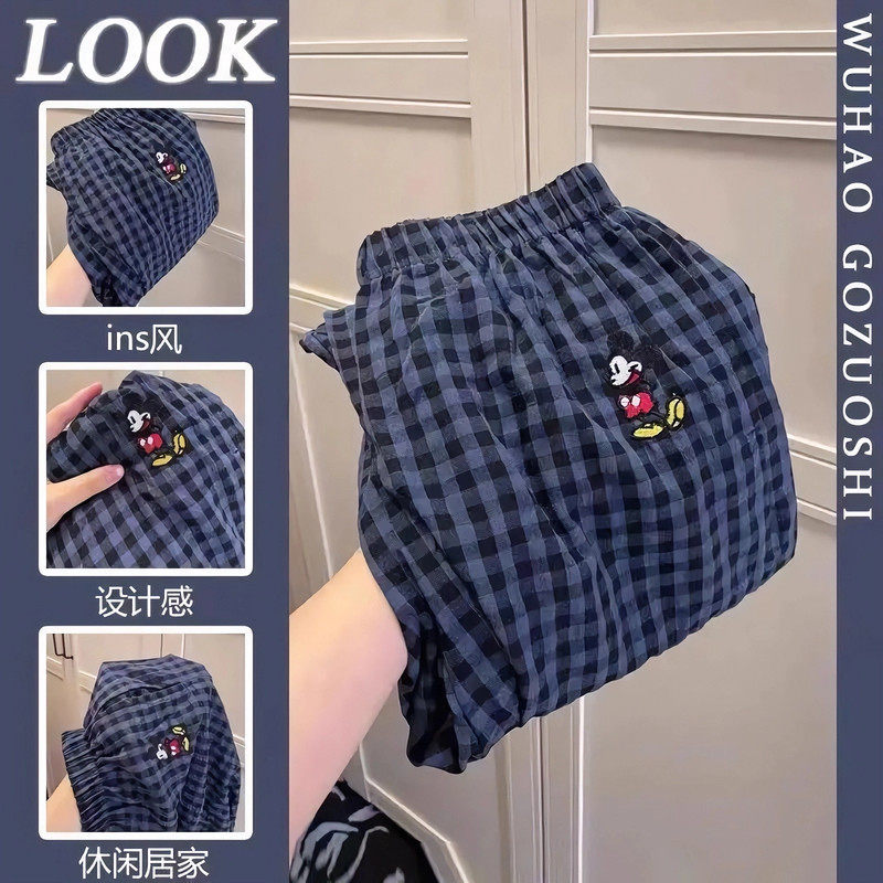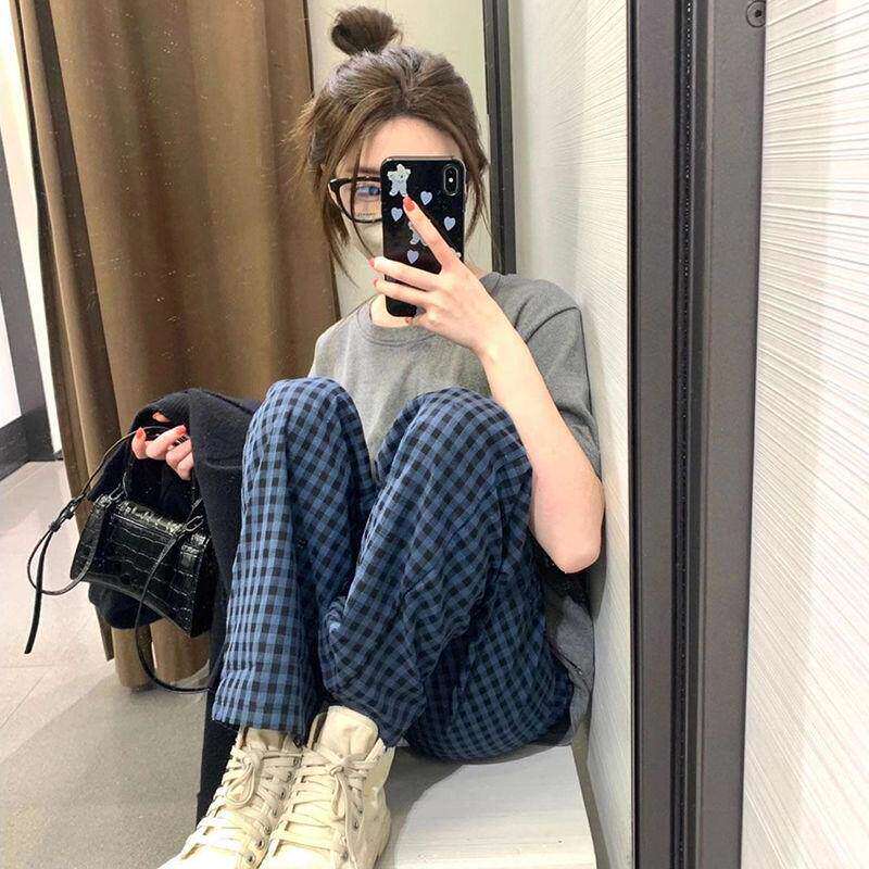 睡裤女格子裤春夏季薄款休闲裤居家裤学生秋天可外穿遛弯裤子蓝色