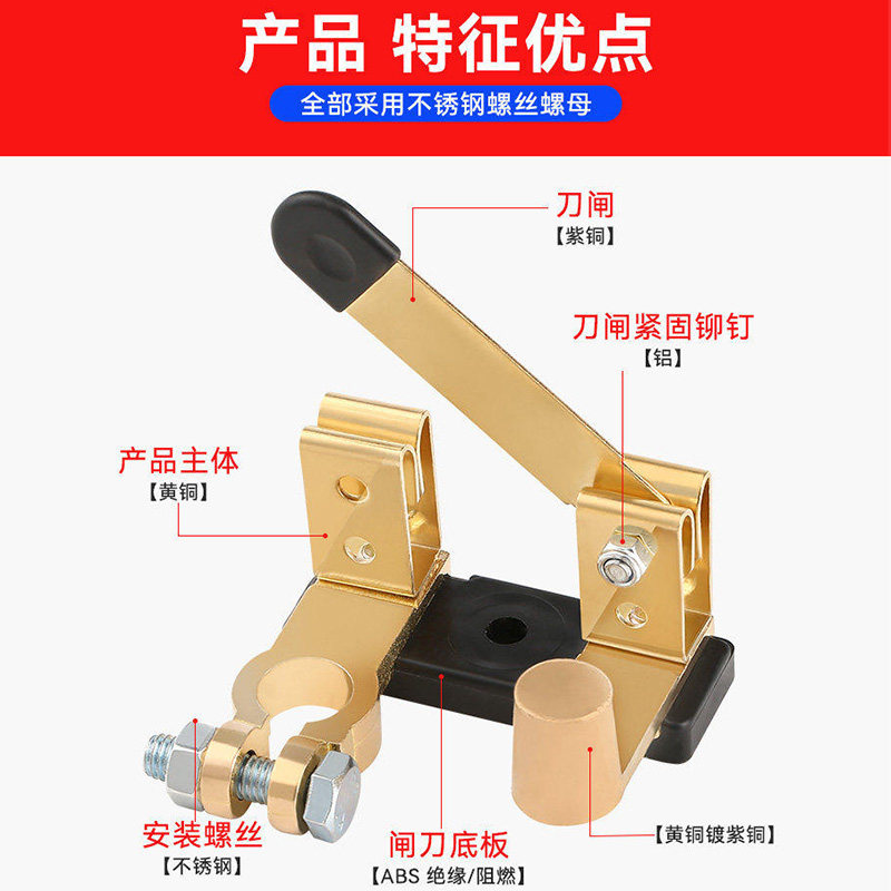 汽车电瓶断电开关纯铜正负极通用电闸防漏电改装闸刀黄铜车子总闸