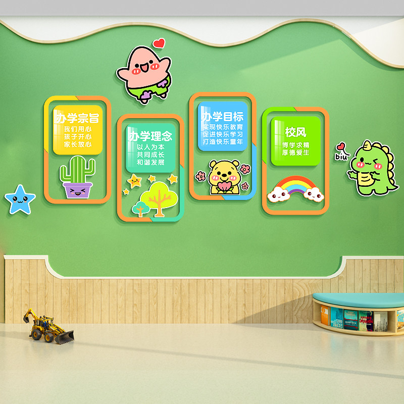 幼儿园办园理念走廊大厅形象墙装饰文化托管机构中心环创主题成品