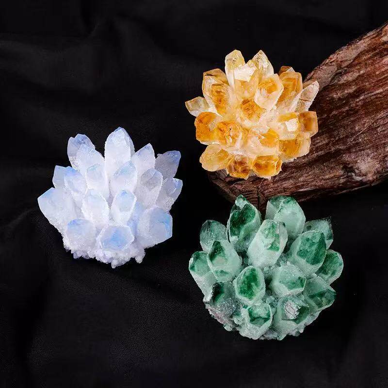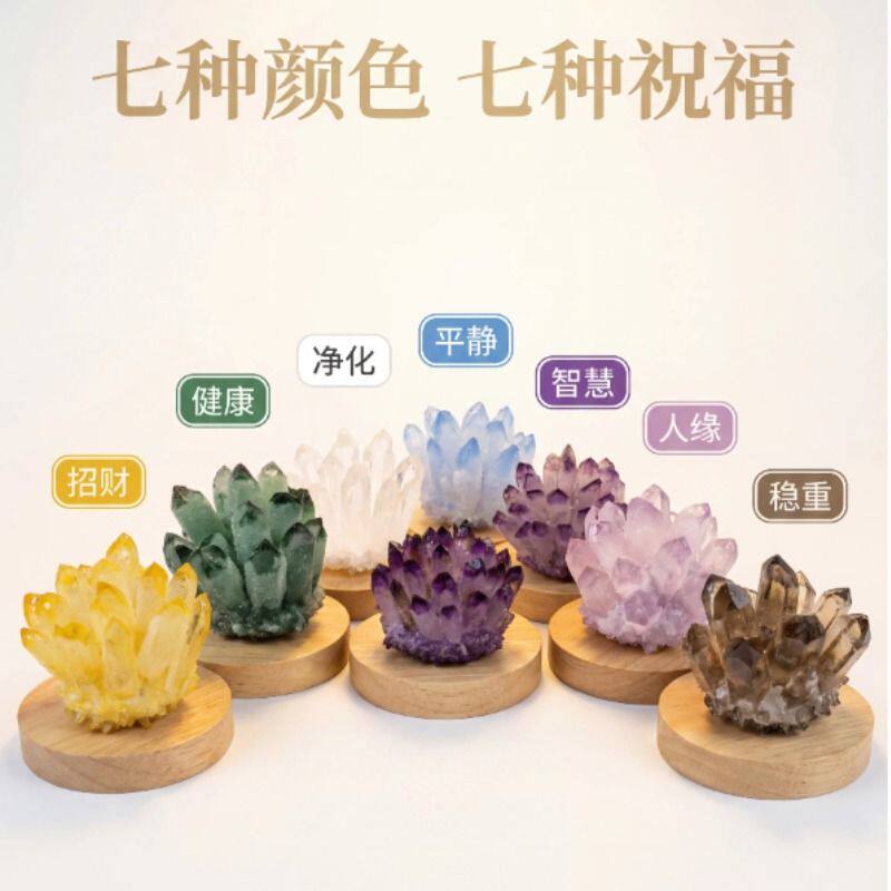天然黄绿白紫水晶簇摆件水晶原石聚财观赏晶簇桌面工艺品摆件消磁