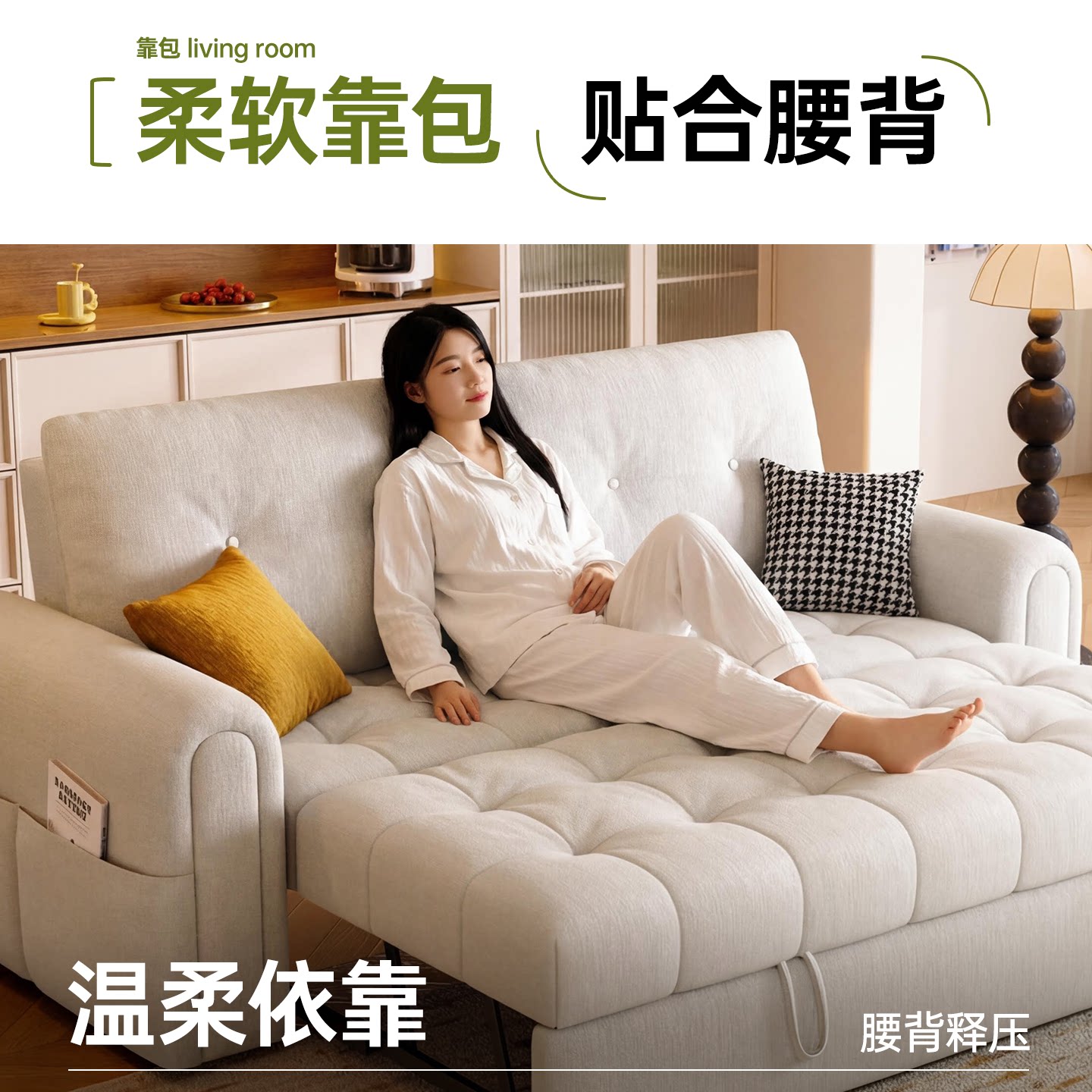 奶油风布艺沙发客厅2025新款小户型家用可拆洗三人位直排云朵沙发