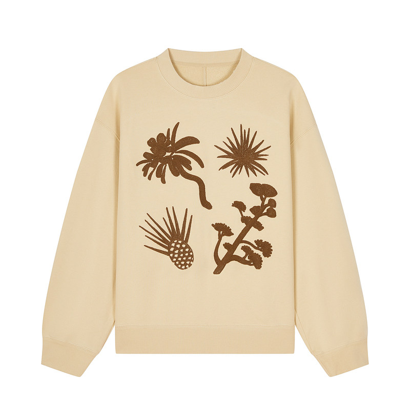 速写男装春秋季新款长袖卫衣套头刺绣图案圆领设计感时尚潮流上衣