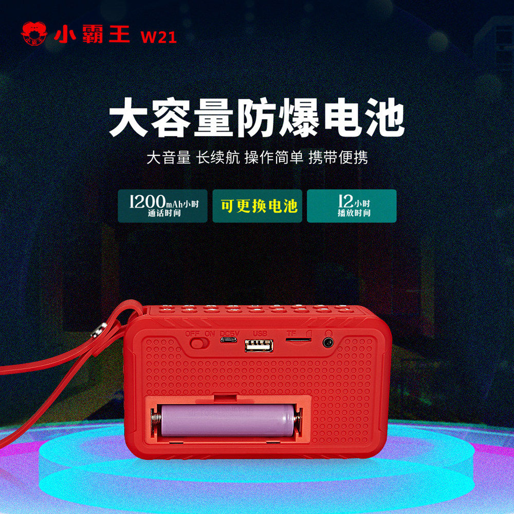 小霸王W21蓝牙音响老人评书机收音机大音量插U盘耳机录音小型音箱