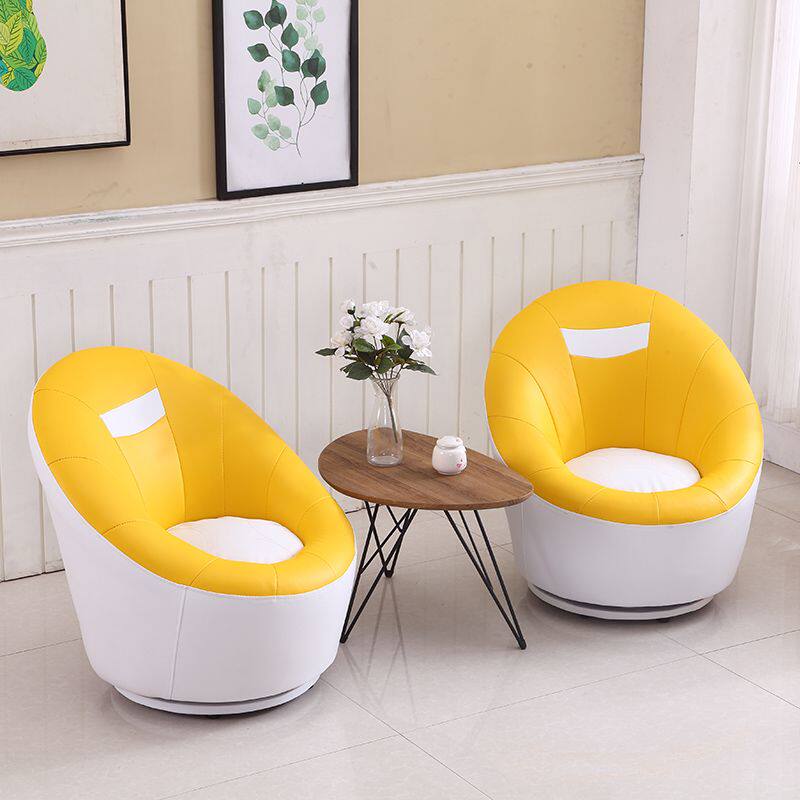 c懒人沙发皮艺单人客厅洽谈沙发办公书房电脑休闲实木旋转小沙发