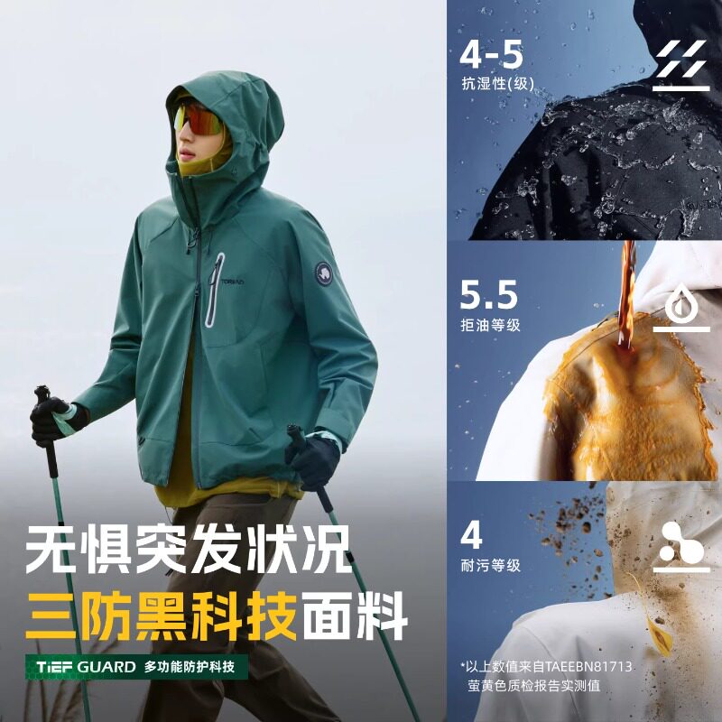 【山行】探路者三防轻弹功能外套男女户外登山徒步防风防泼水夹克