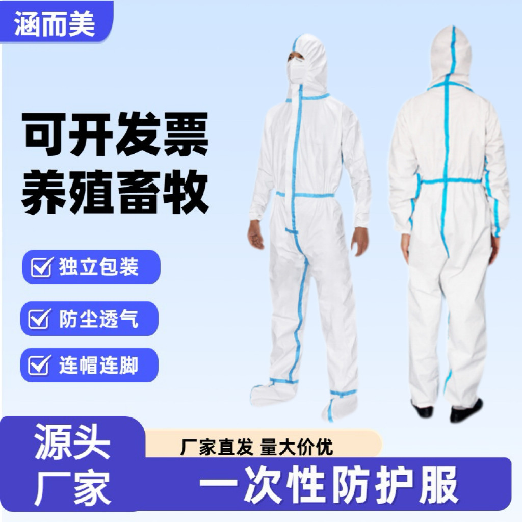 一次性防护服SF透气膜连体防水连脚防护服白色加厚专用工作隔离衣
