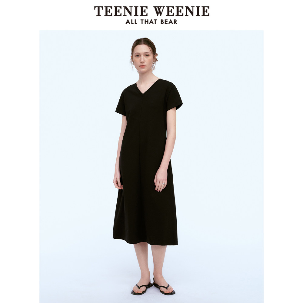 TeenieWeenie小熊奥莱女装2025夏装设计感优雅风两面穿短袖连衣裙