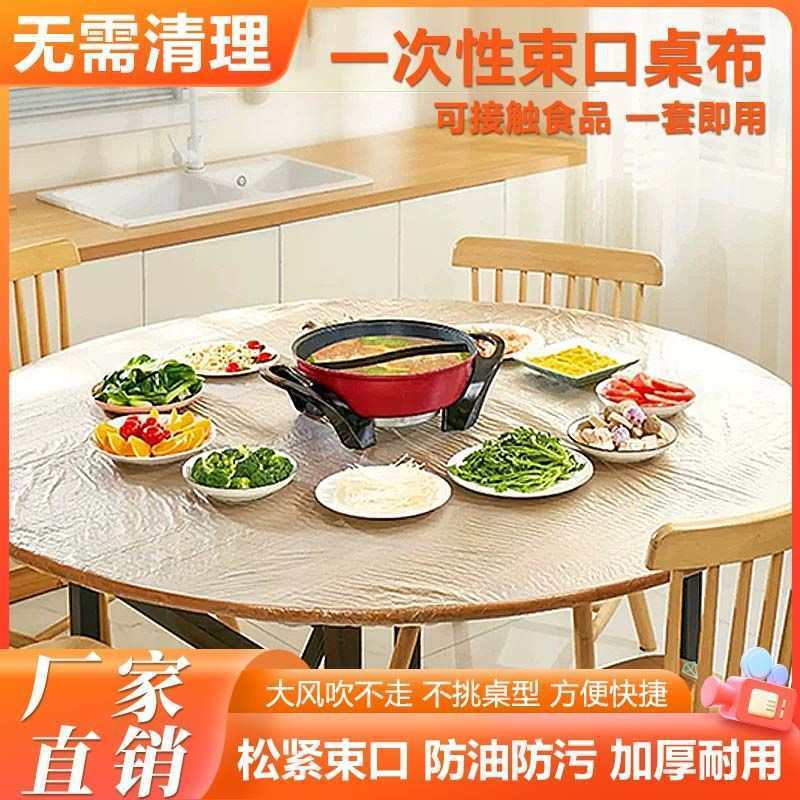 一次性桌布松紧束口家用加厚免洗红色饭店酒席婚庆套特厚圆桌餐桌