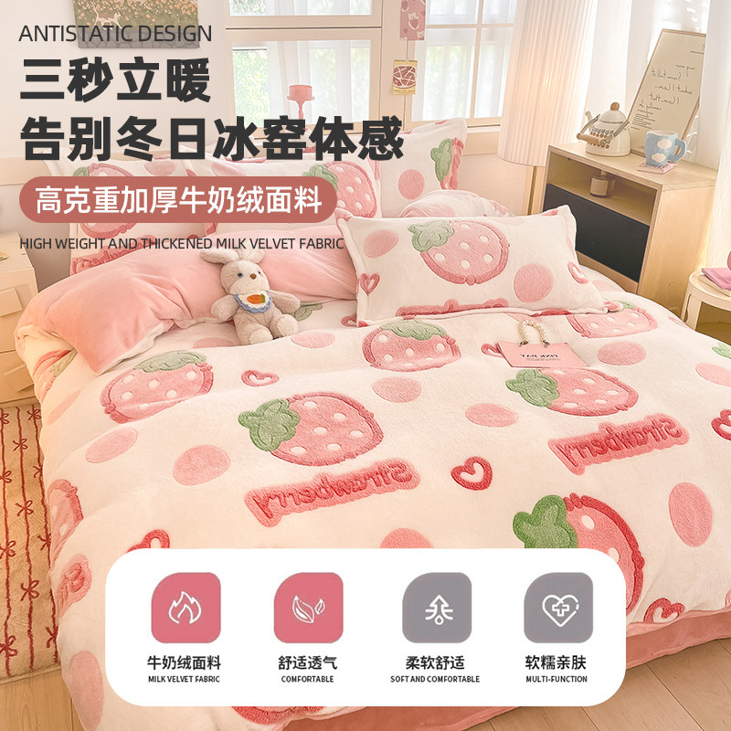 冬季加绒被套单件牛奶绒珊瑚绒宿舍单人单独毛绒被罩1.5米四件套3