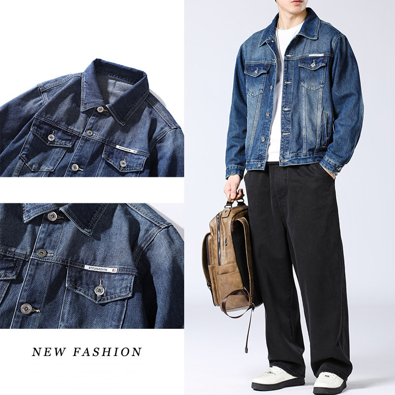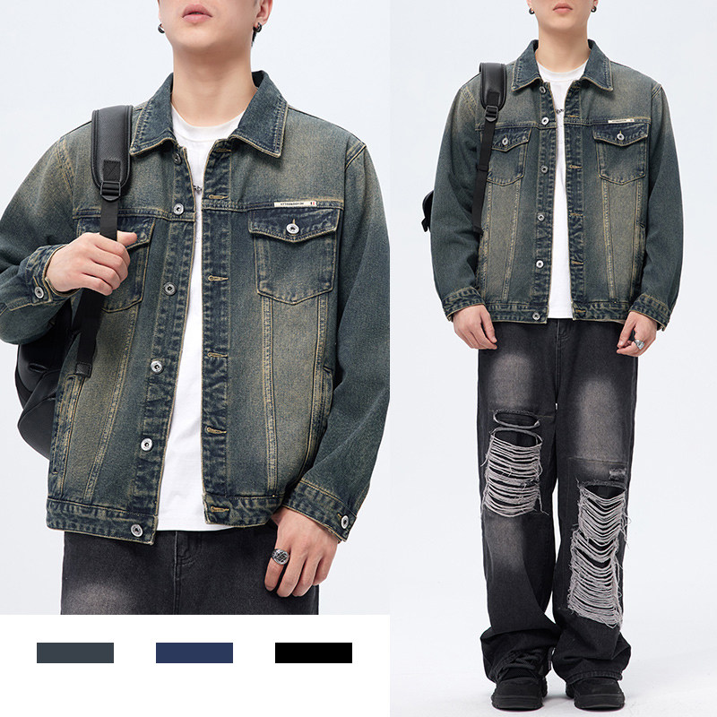 查尔斯桃心 美式复古水洗牛仔夹克男2025新款春秋季排扣翻领外套
