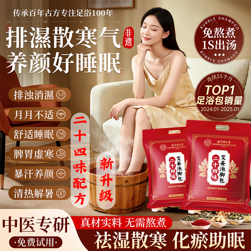 北京同仁堂艾草泡脚的药包去湿气祛排毒驱寒助睡眠足浴生姜花椒叶