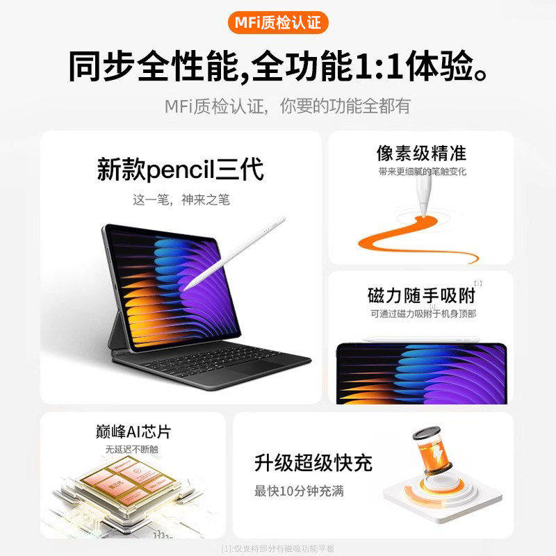 闪魔电容笔ipad触控笔平板手机触屏笔适用苹果小米apple pencil磁吸手写笔学习机绘画剪辑适配华为绘画剪辑修