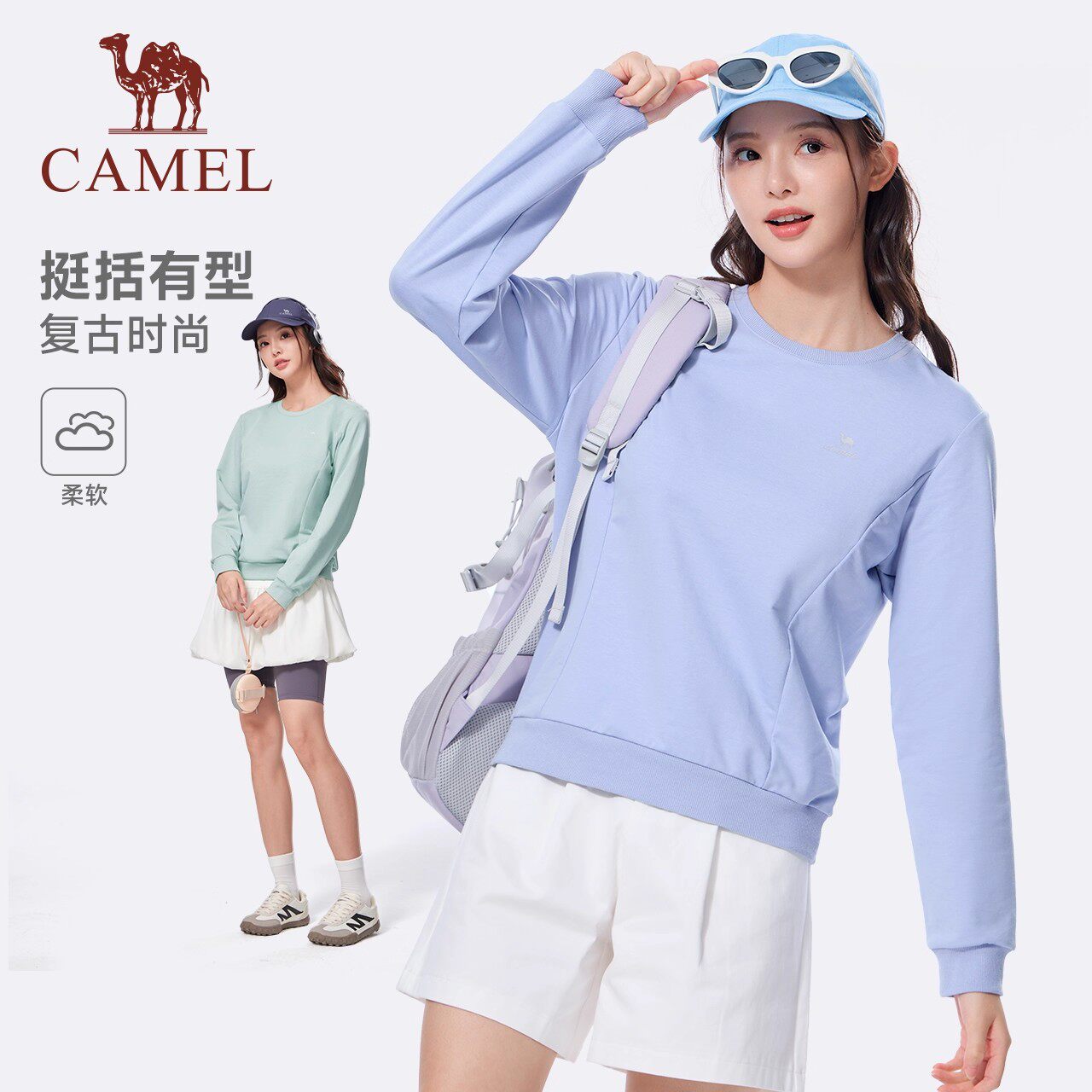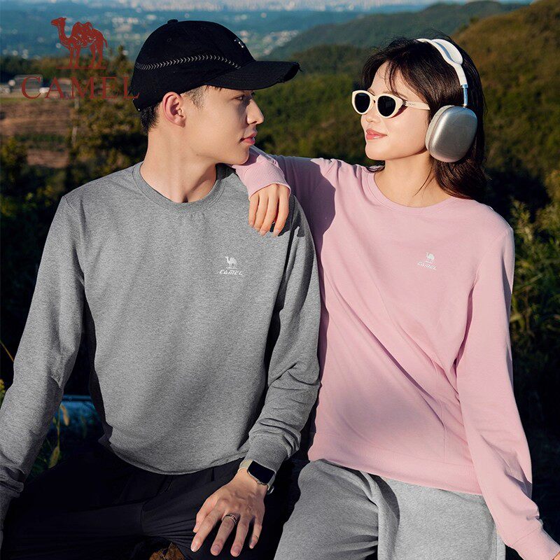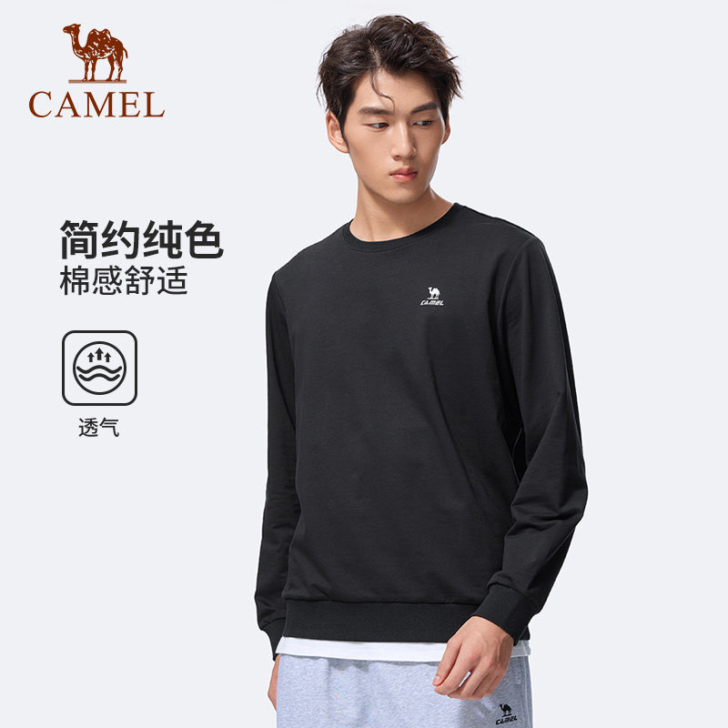 骆驼男装运动圆领套头卫衣男宽松显瘦百搭薄款长袖打底休闲T恤女