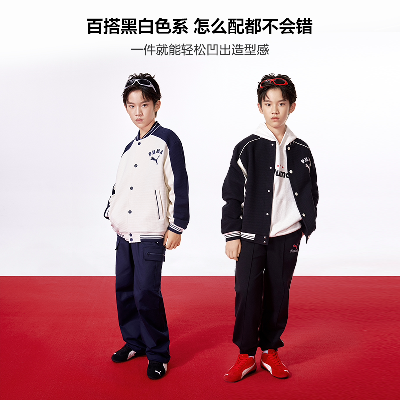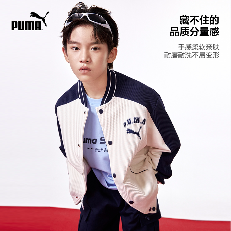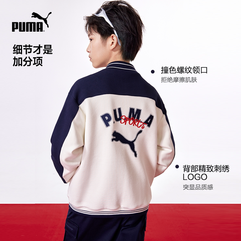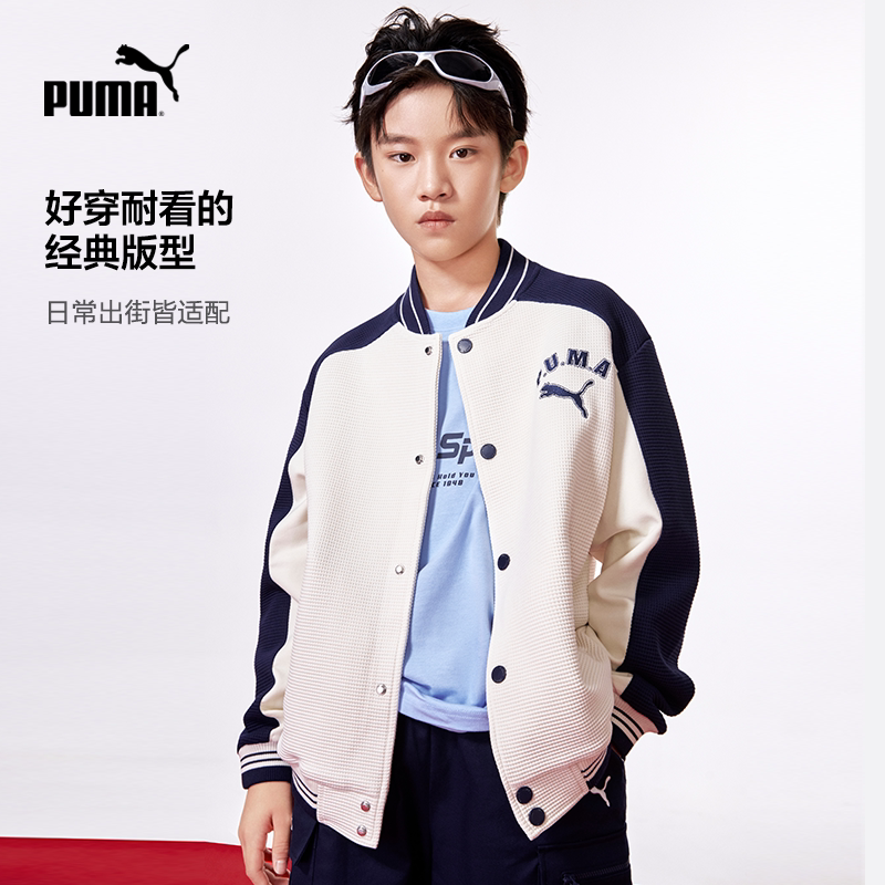 PUMA彪马童装儿童棒球外套重磅华夫格棒球服拼接撞色洋气夹克