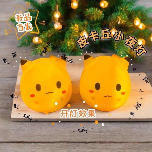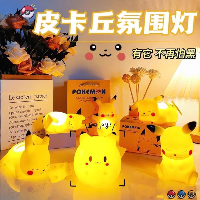 皮卡丘小夜灯卧室睡眠灯女生男孩房间氛围台灯床头灯柔光网红灯摆件