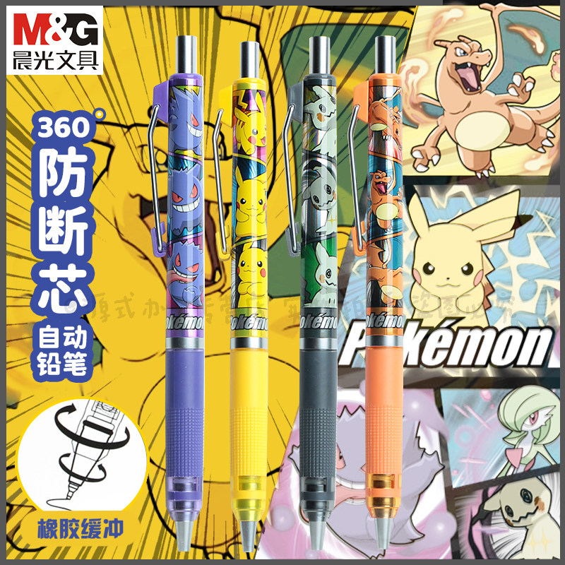 新品晨光联名宝可梦皮卡丘自动铅笔0.5mm防断芯小学生专用低重心