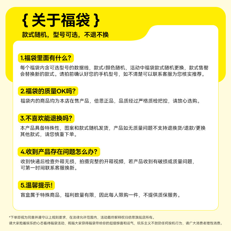 倍思数据线盲盒适用苹果华为安卓Typec手机车载iPhone平板闪充typec转lighting加长惊喜福袋充电线