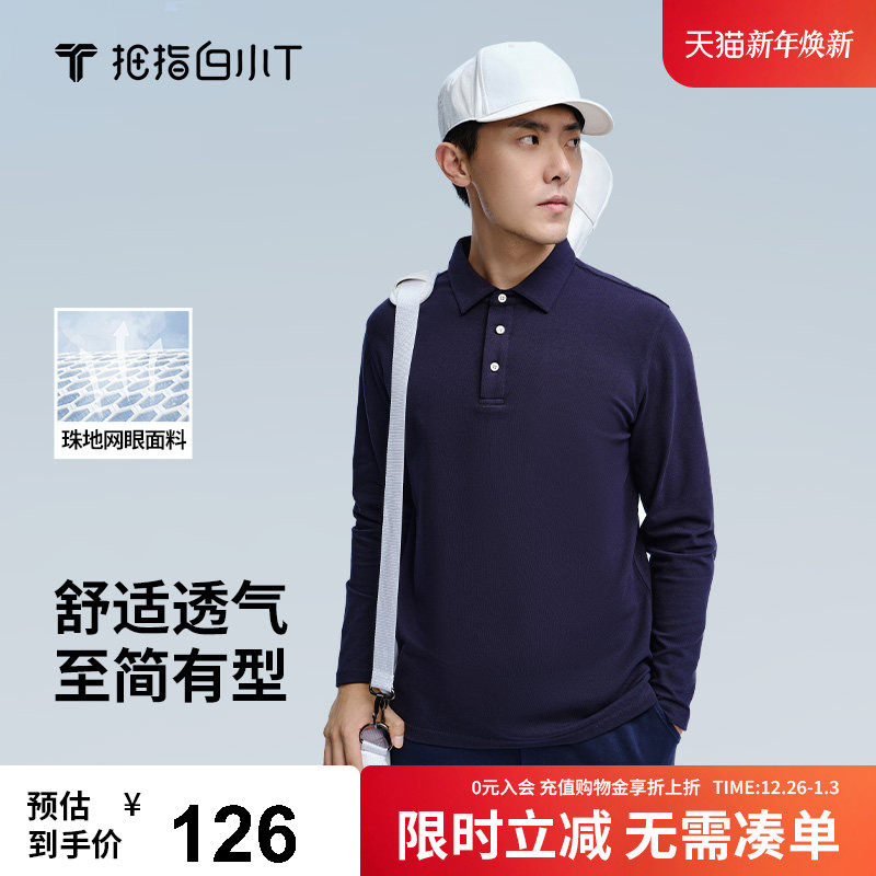 拇指白小T商务长袖polo衫男士简约上衣2025秋季新款纯色翻领T恤衫
