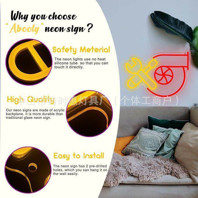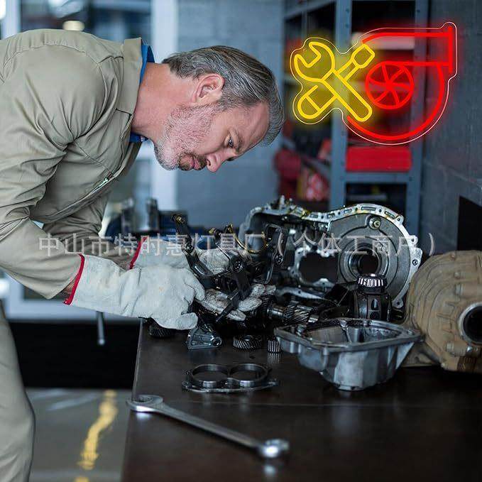 霓虹灯,扳手涡轮霓虹灯用于墙壁装饰,LED 涡轮灯墙艺术汽车车库